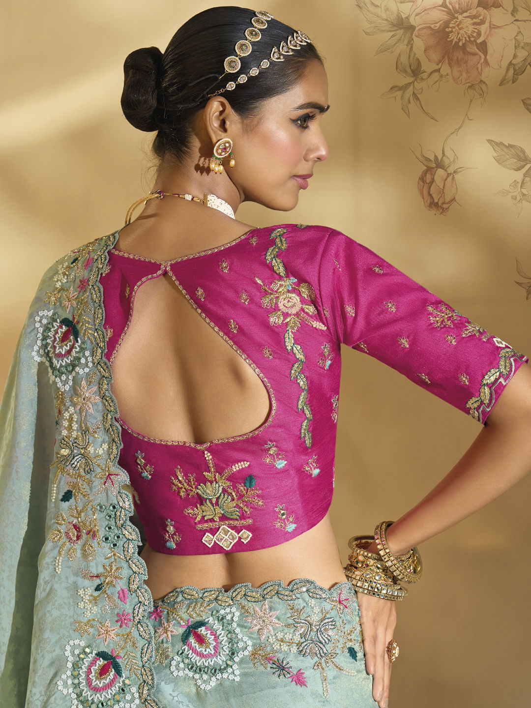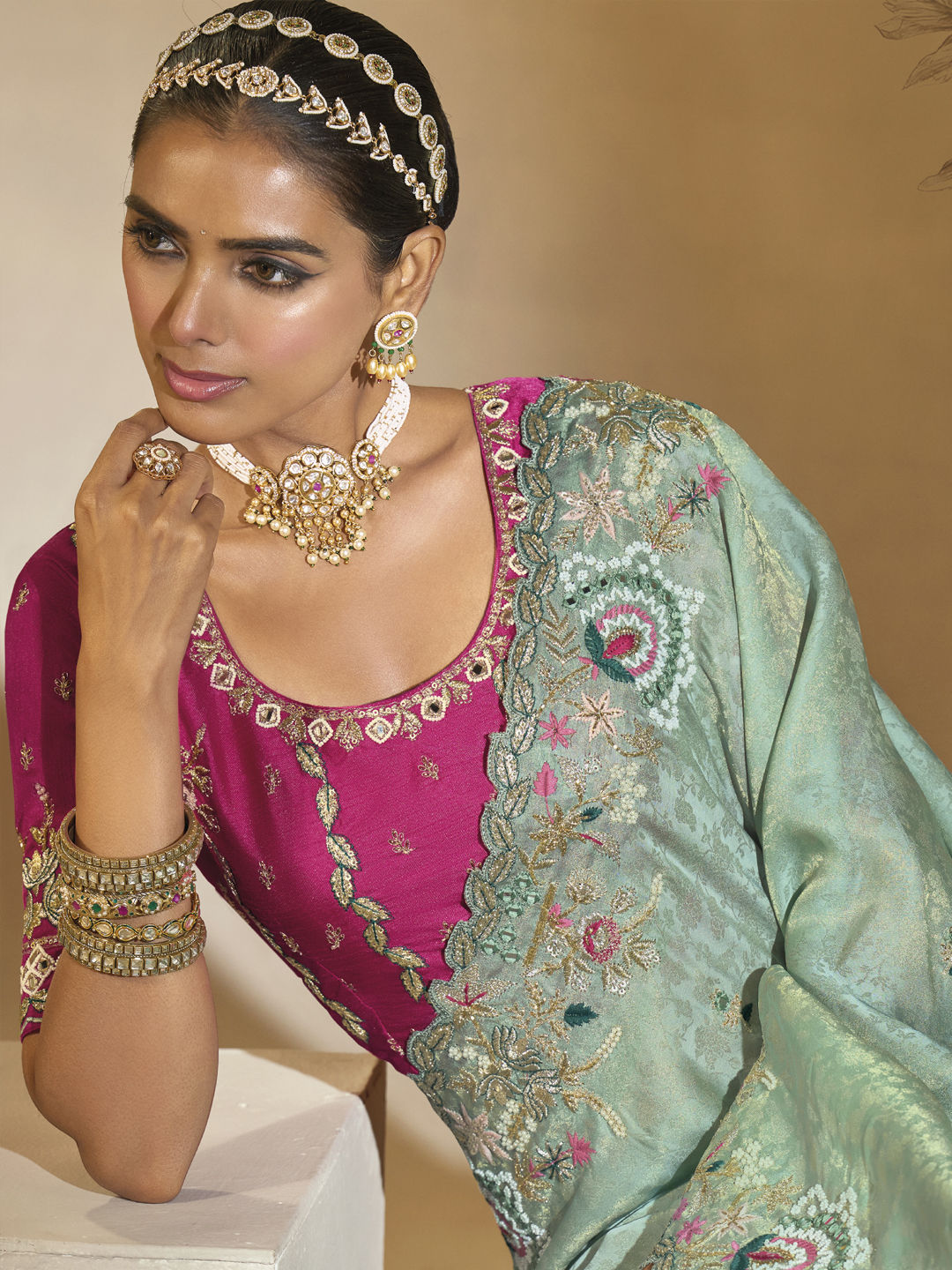 Silk Wedding Saree in Pink and Majenta with Zari work