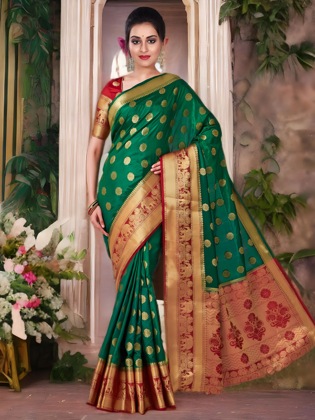 in Green with Zari work