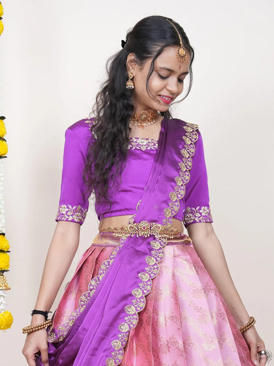 Pink and Majenta color Lehenga in Kanjeevaram Silk fabric with Weaving work