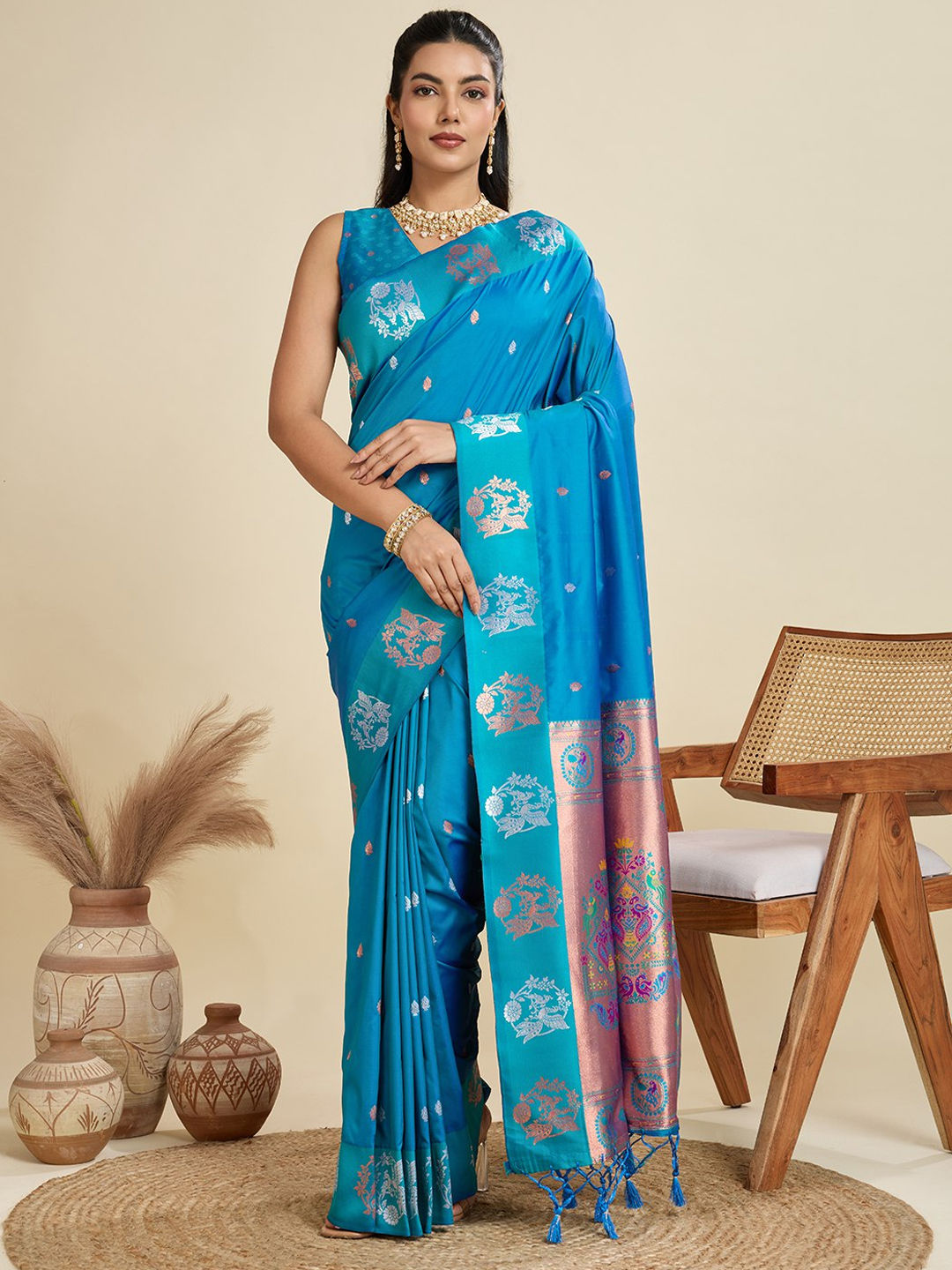Blue color Saree in Kanjeevaram Silk fabric with Weaving work