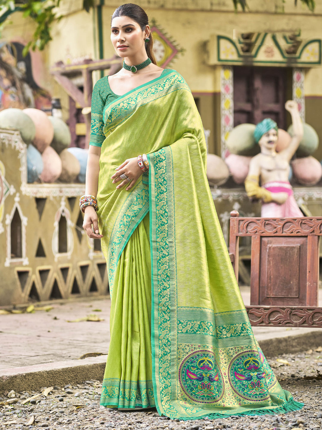in Green with Weaving work