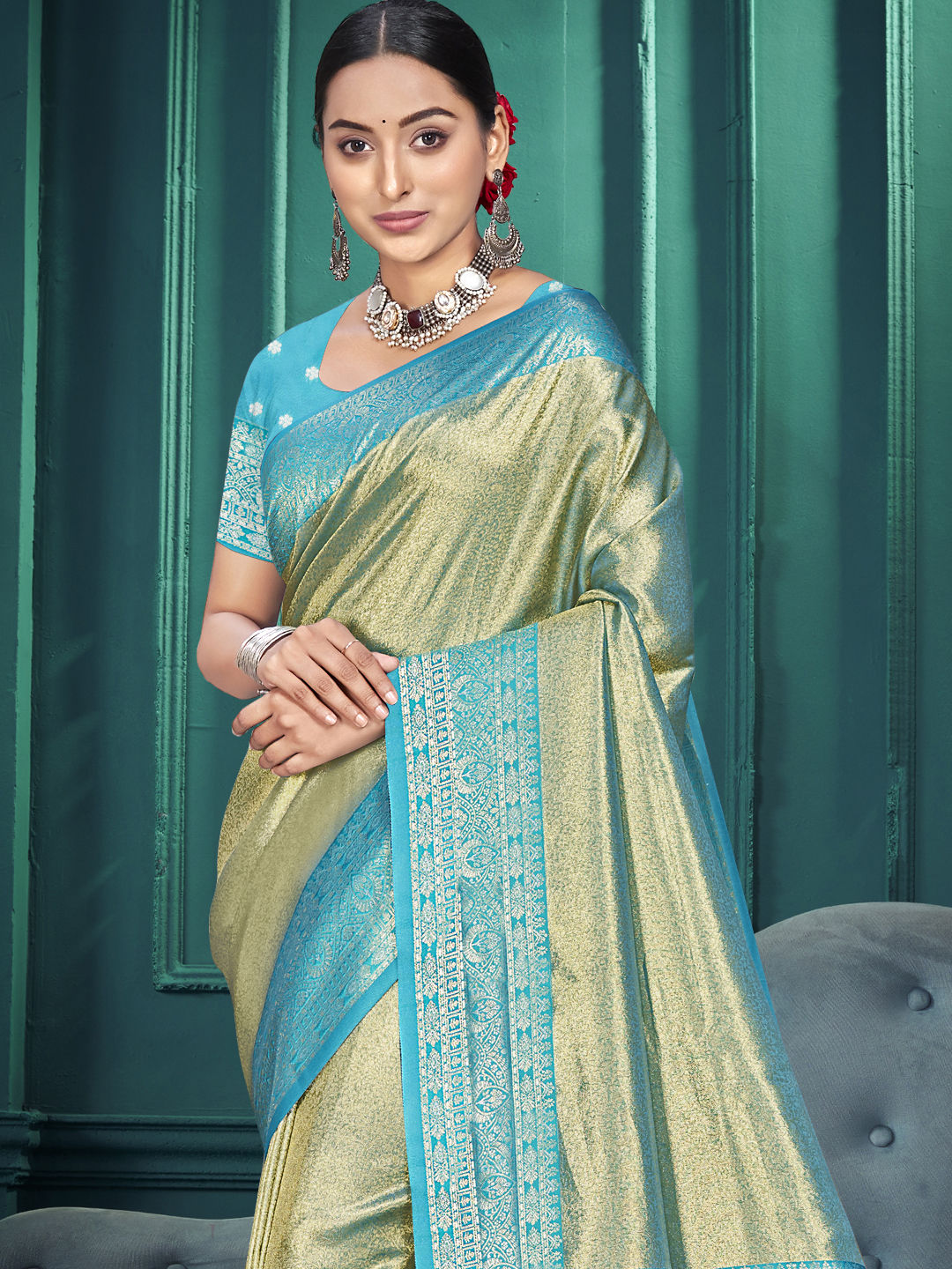 Kanjeevaram Silk Traditional Saree in Yellow with Weaving work