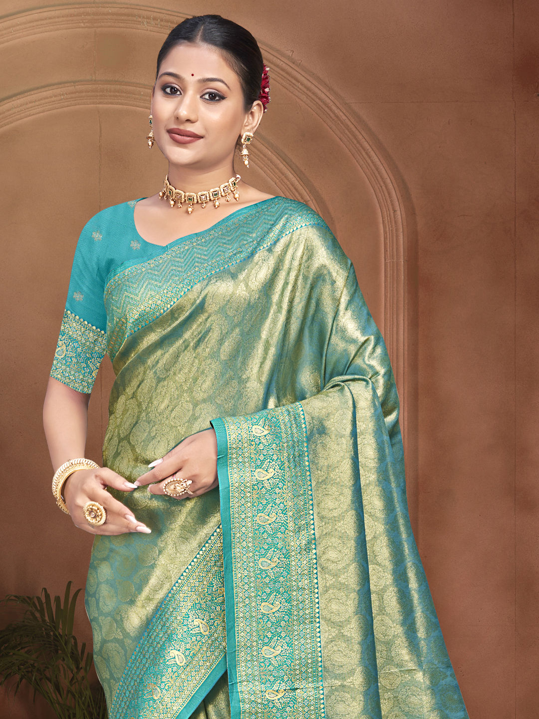 Kanjeevaram Silk Festive Saree in Green with Weaving work
