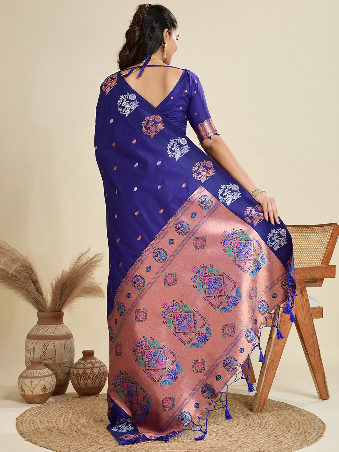 in Blue with Weaving work