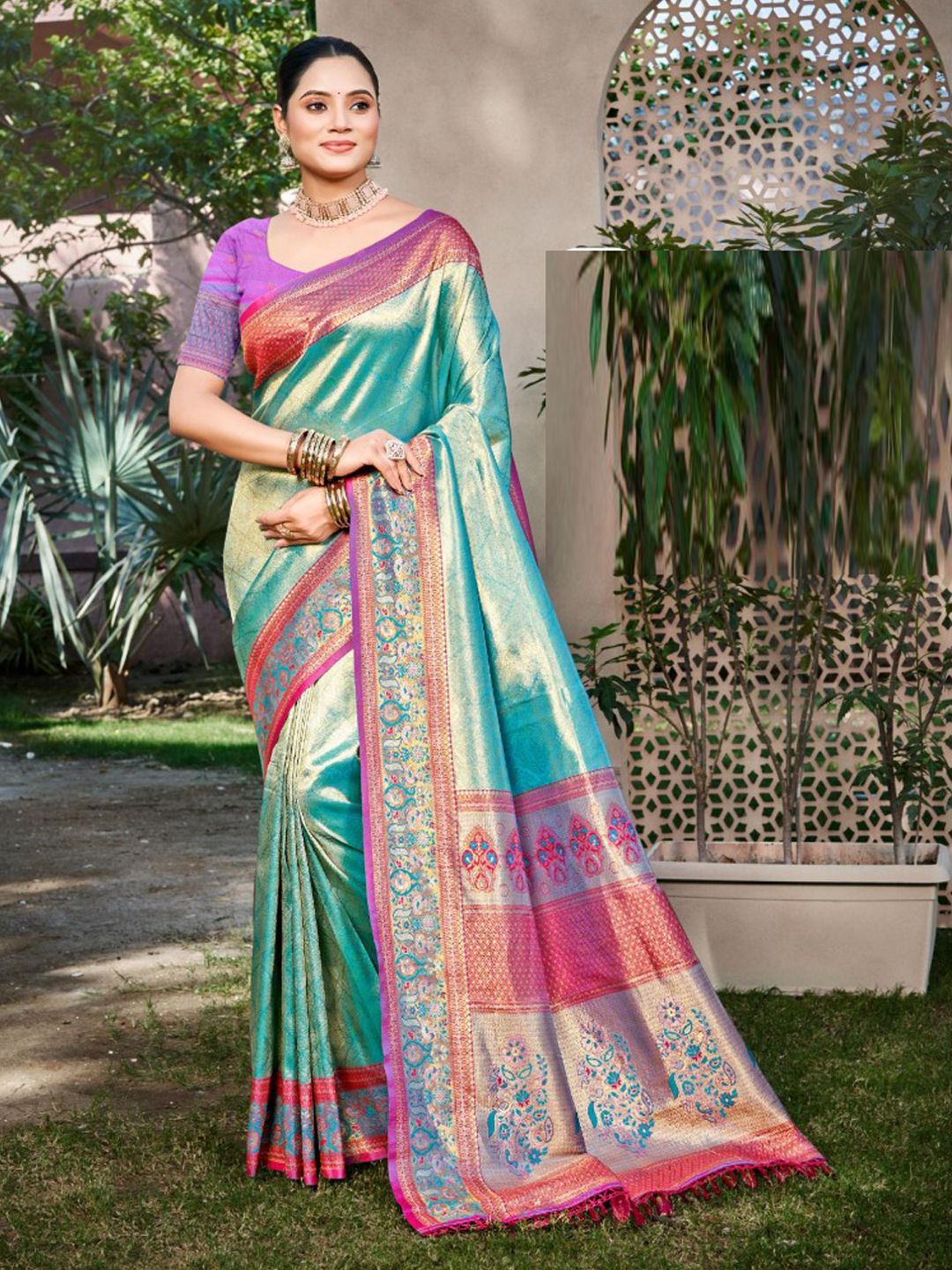 Kanjeevaram Silk Traditional Saree in Green with Weaving work