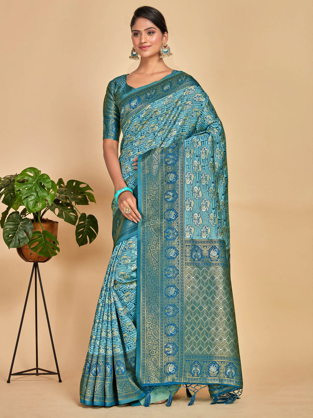 in Blue with Zari work