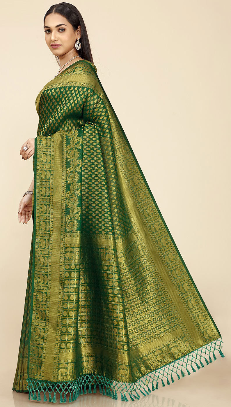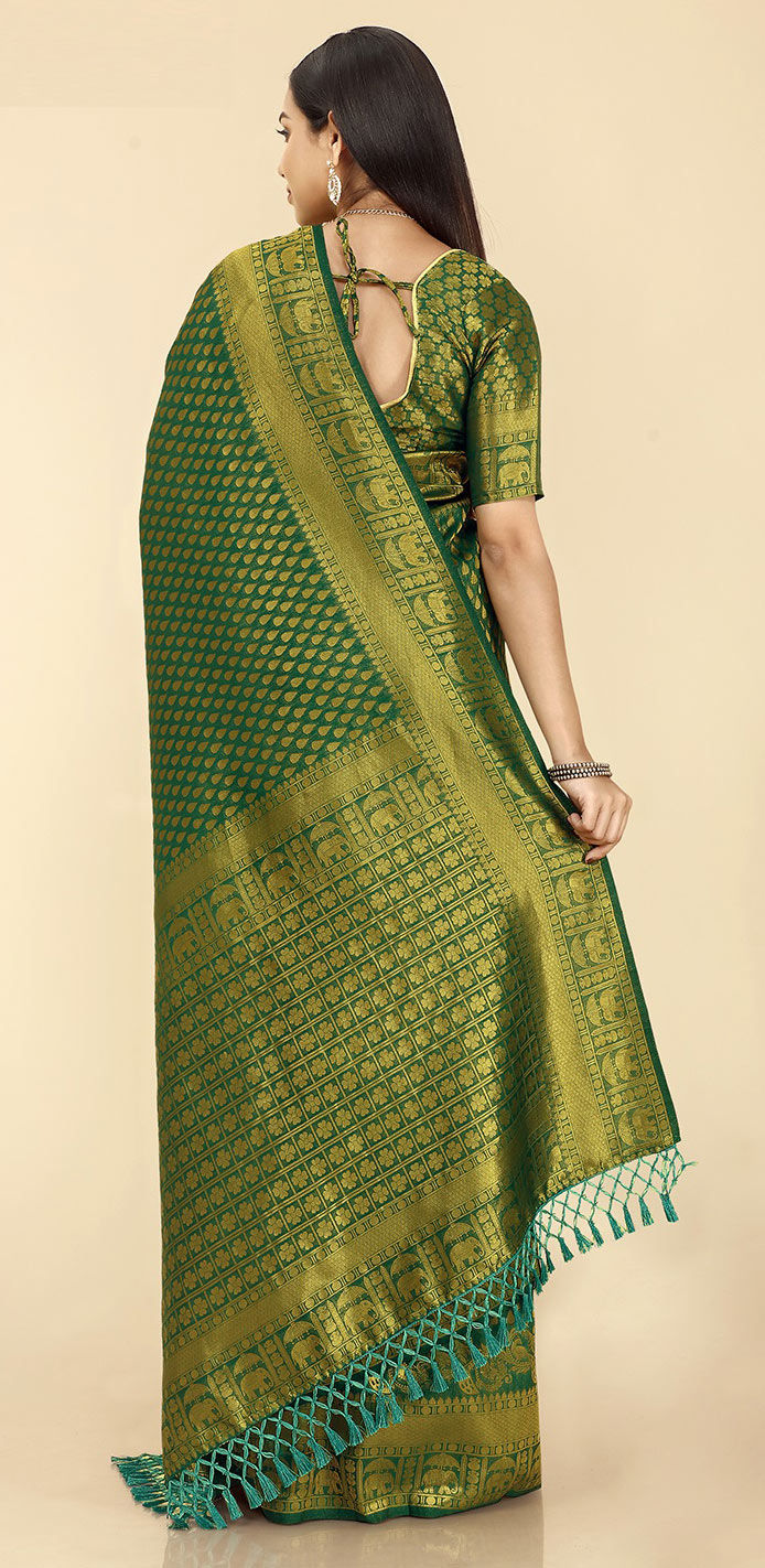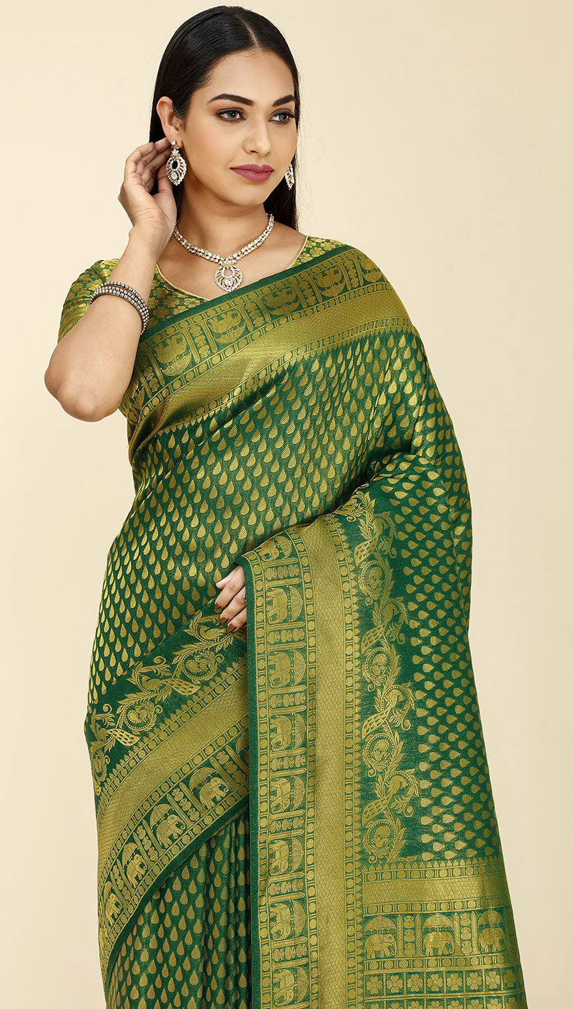 Green color Saree in Kanjeevaram Silk fabric with Weaving work