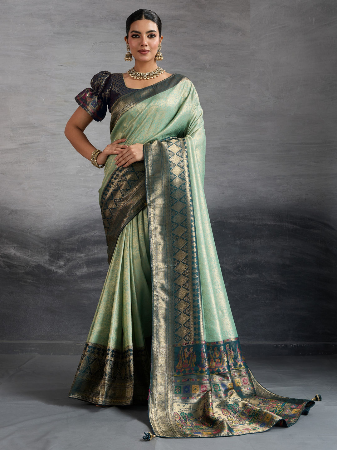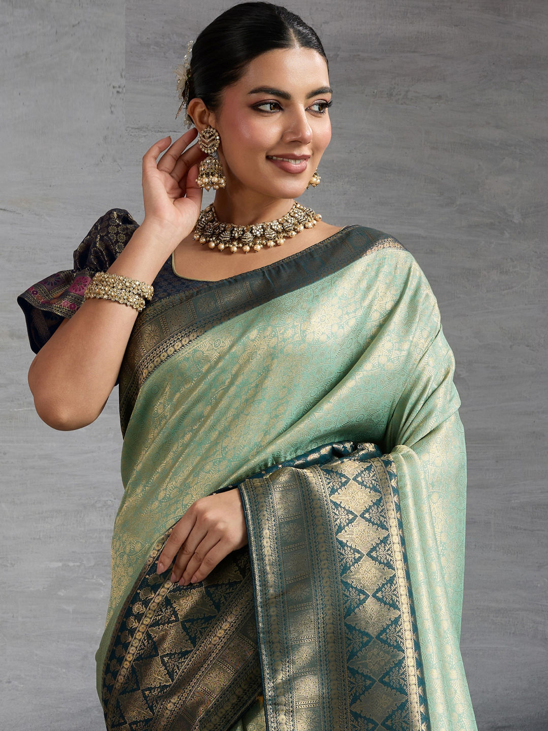 Green color Saree in Kanjeevaram Silk fabric with Weaving, Zari work