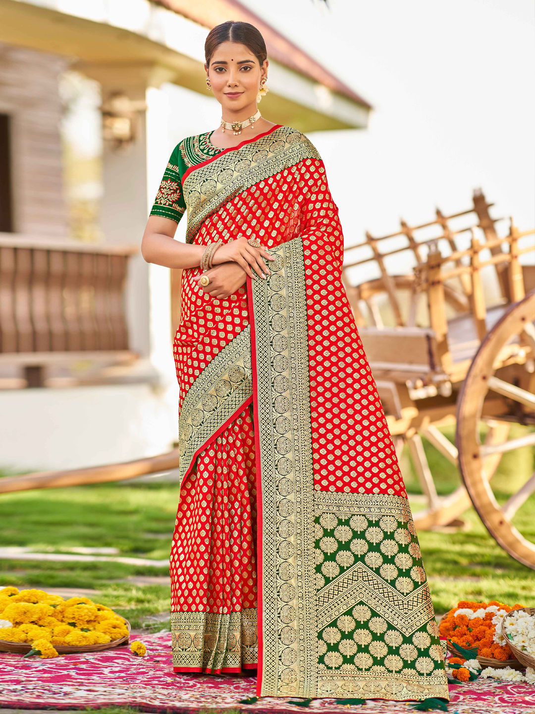in Red and Maroon with Weaving work