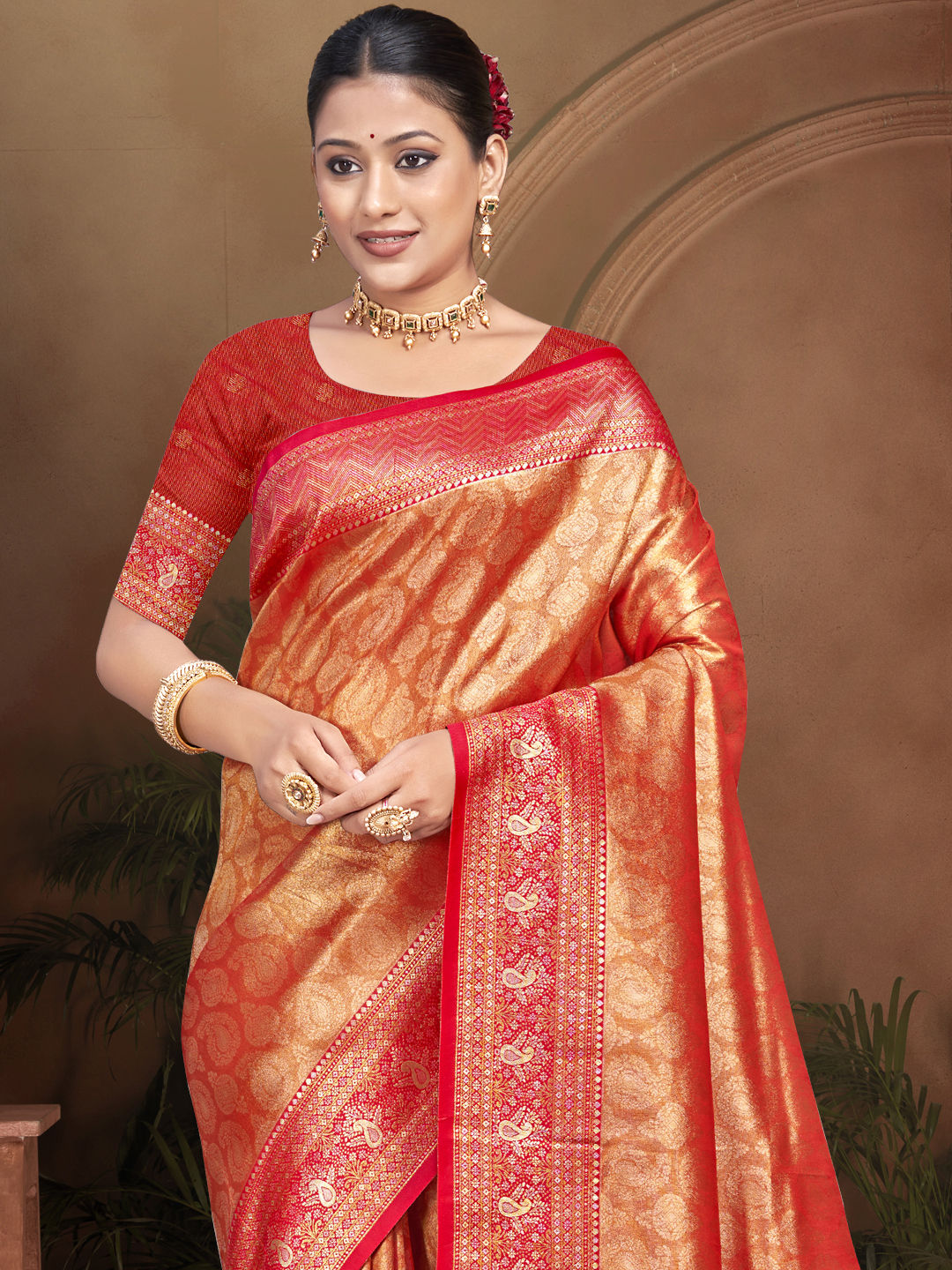 Kanjeevaram Silk Festive Saree in Red and Maroon with Weaving work
