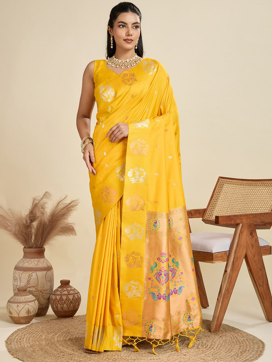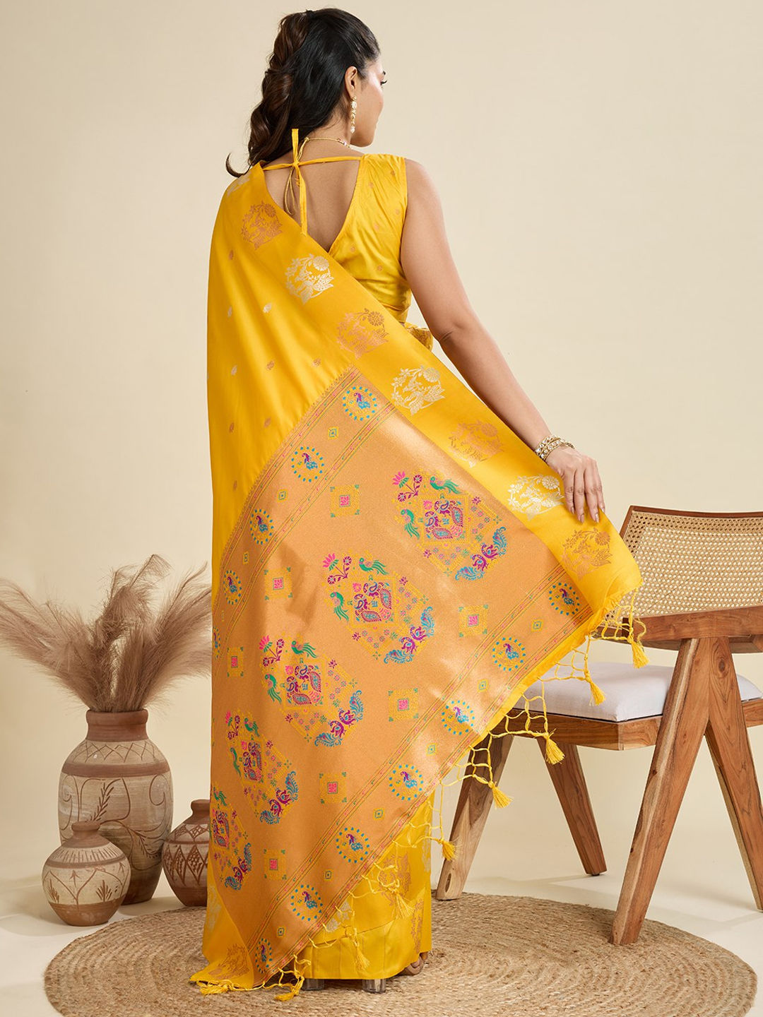 in Yellow with Weaving work