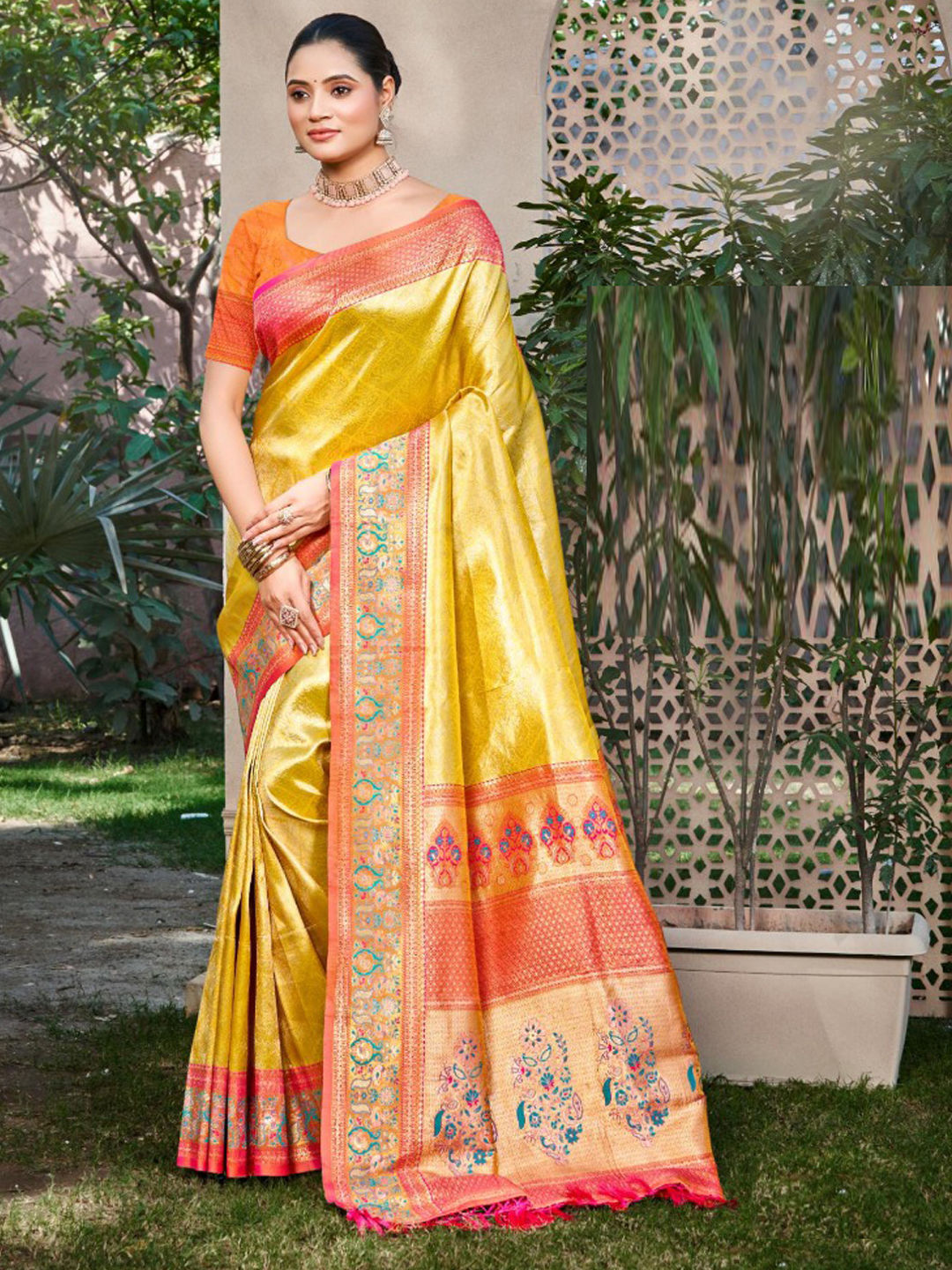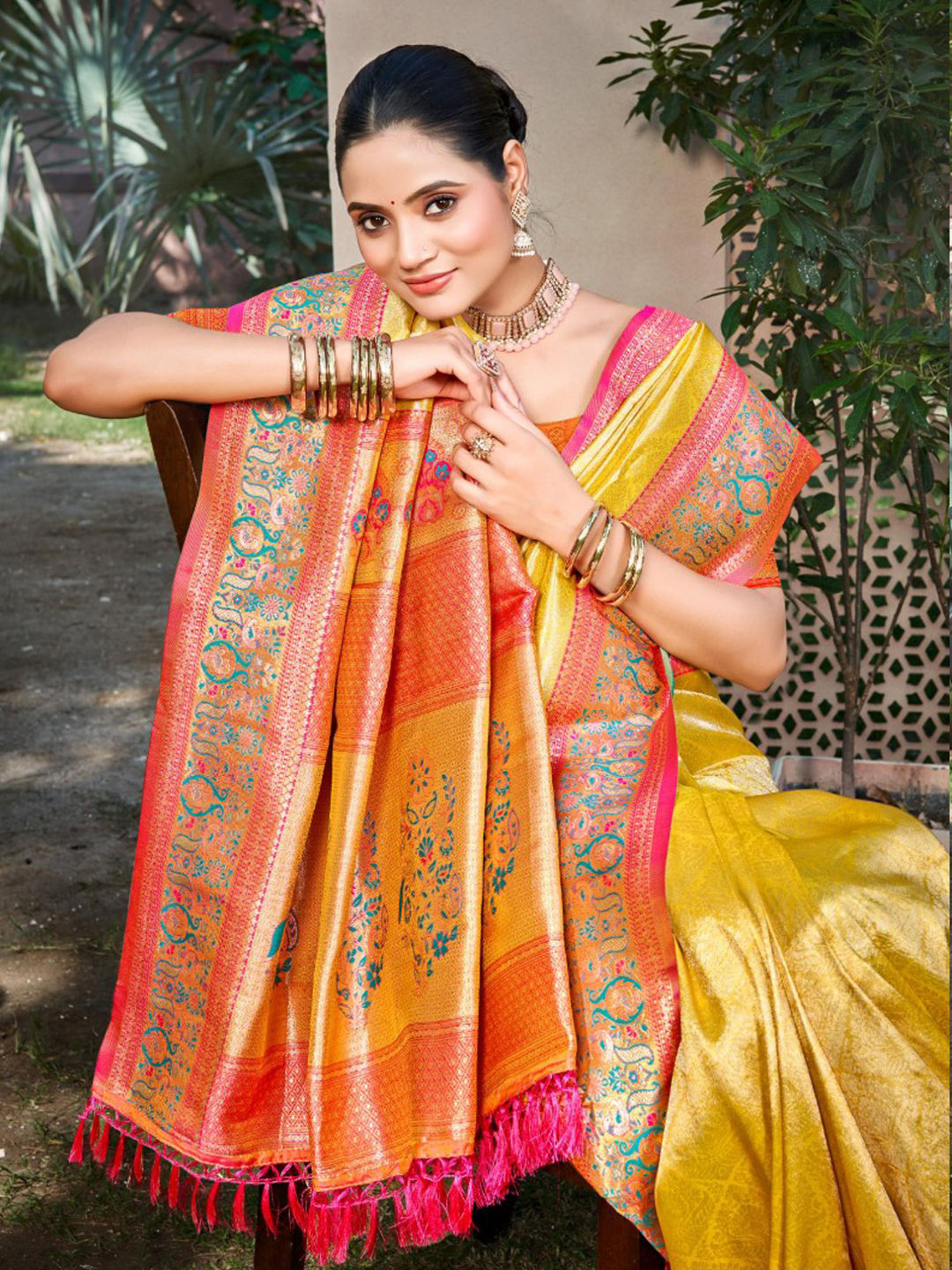 in Yellow with Weaving work