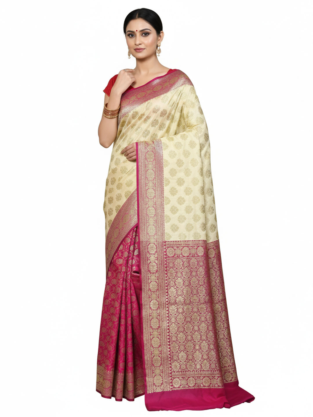 Jacquard Bridal Saree in Beige and Brown with Embroidered work