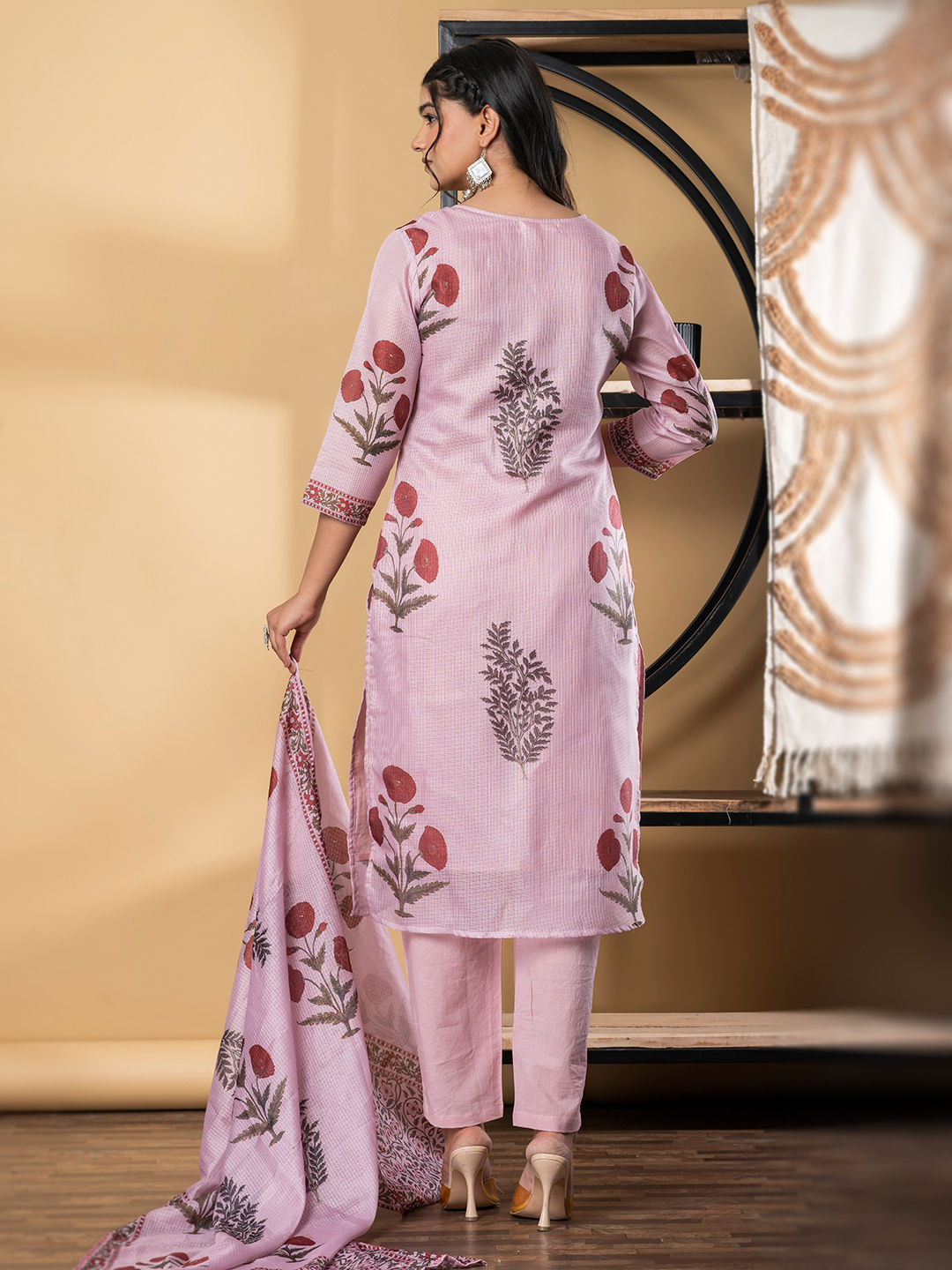 Pink and Majenta color Salwar Kameez in Kota Doria Silk fabric with Floral, Printed work
