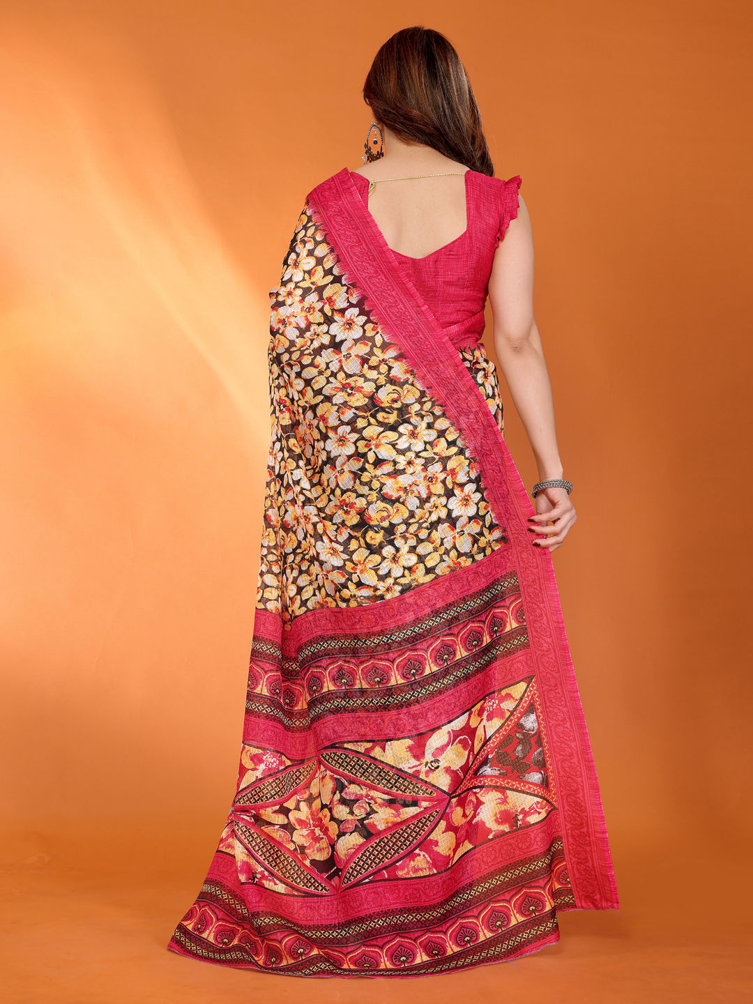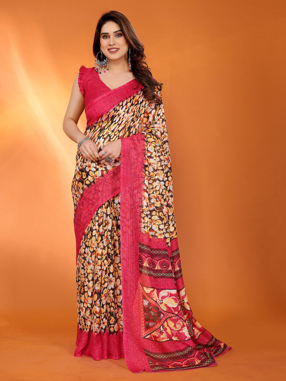 Kota Doria Silk Traditional Saree in Pink and Majenta with Printed work