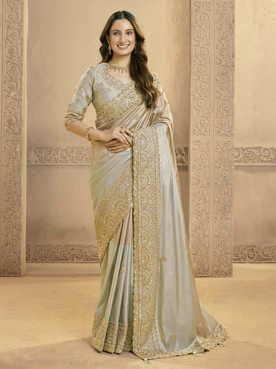 Silver color Saree in Kota Silk fabric with Bugle Beads, Sequence work