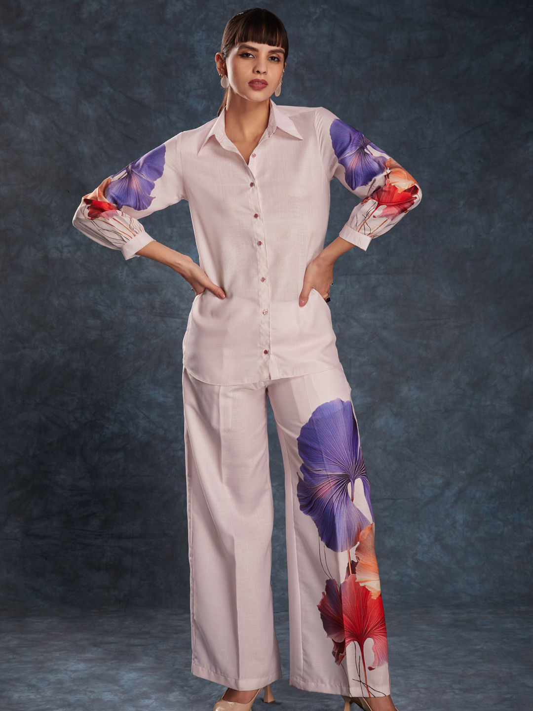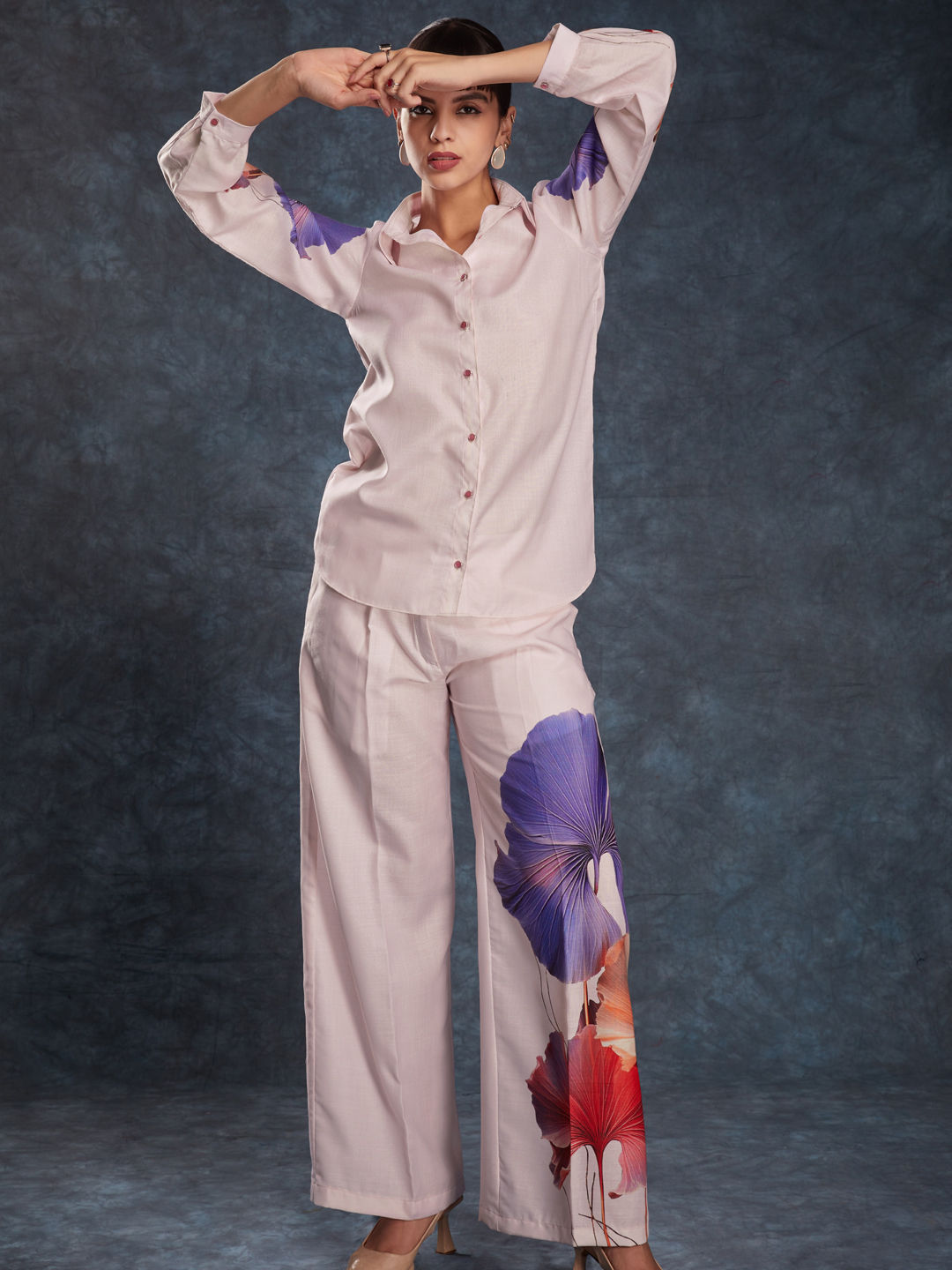 Pink and Majenta color Co-ords Set in Linen fabric with Printed work