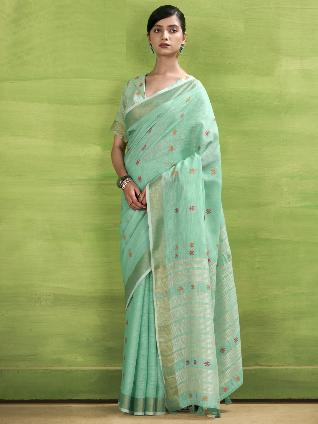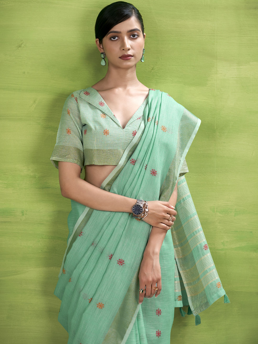 Linen Festive Saree in Pink and Majenta with Weaving work