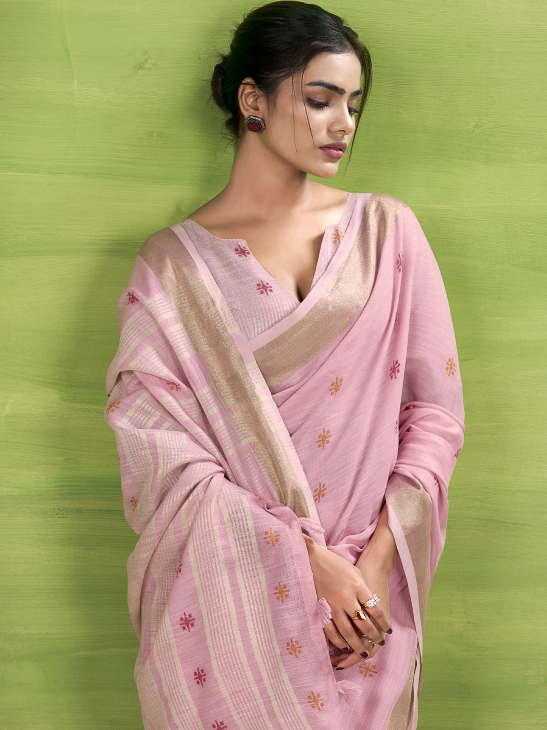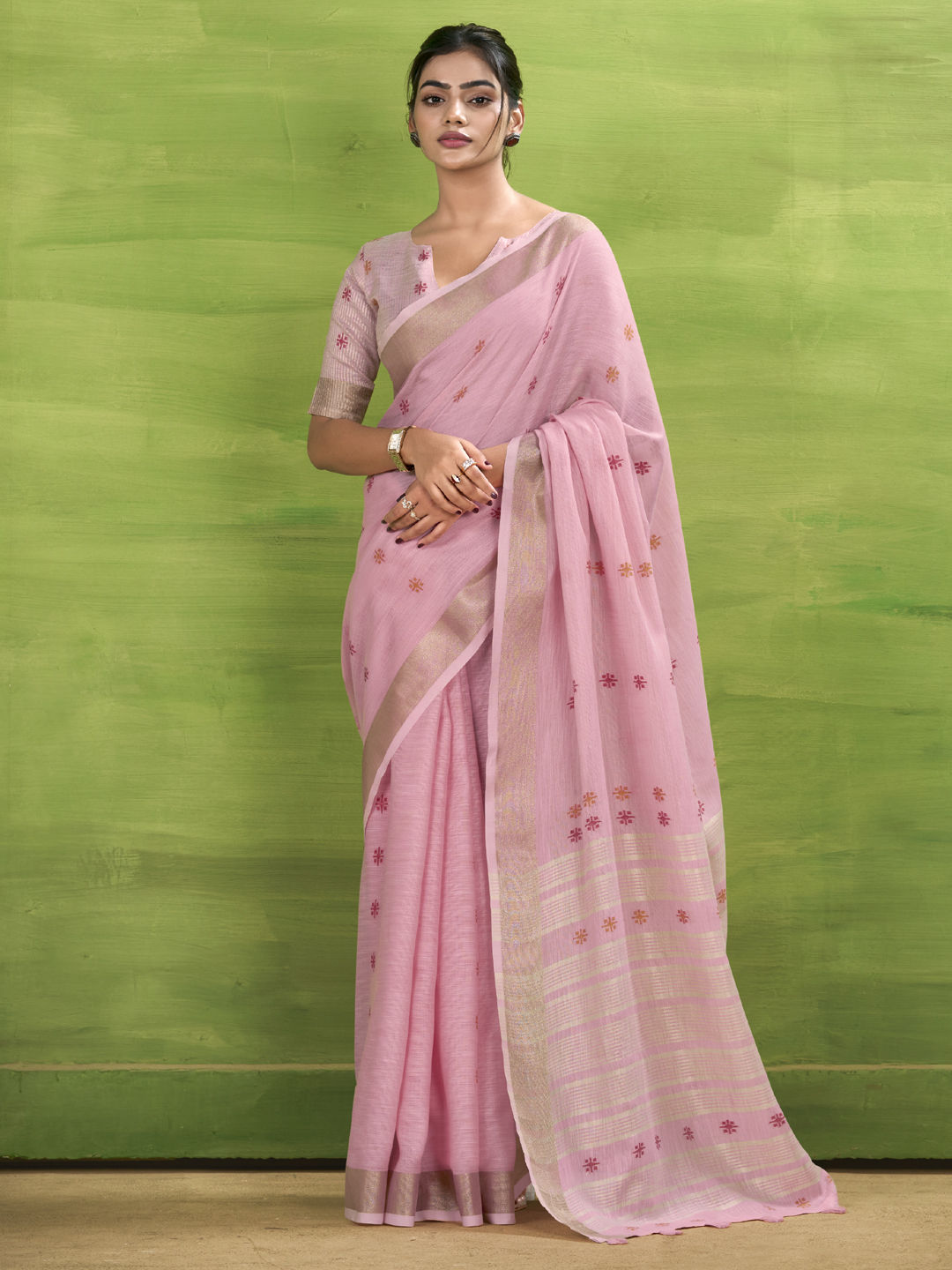 Pink and Majenta color Saree in Linen fabric with Weaving work