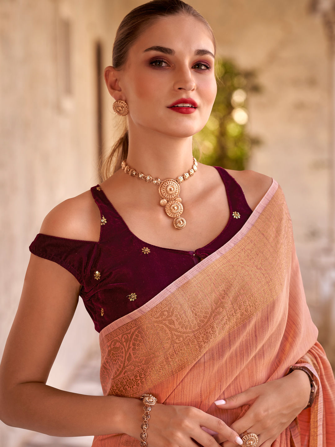 Pink and Majenta color Saree in Linen fabric with Weaving work