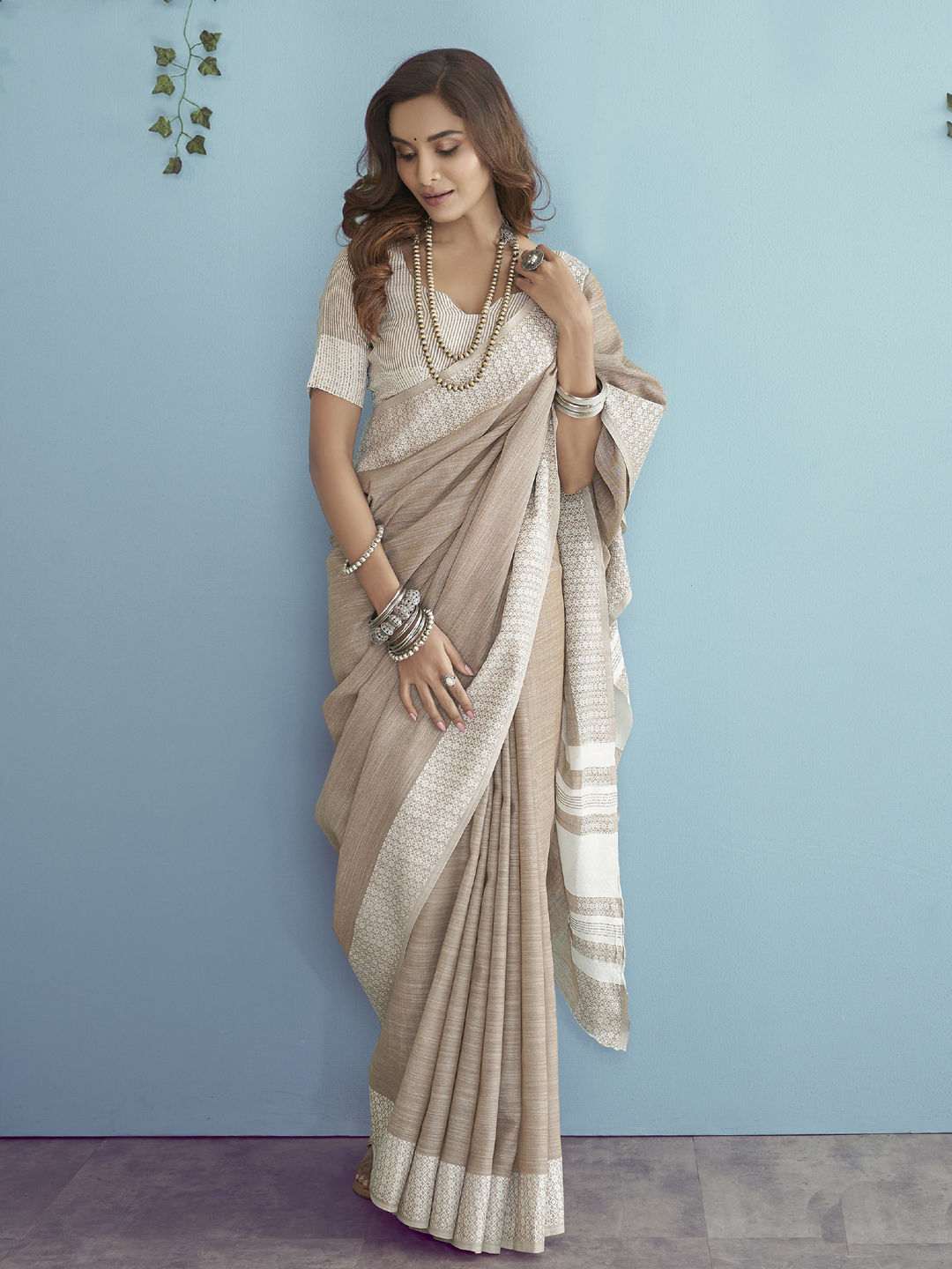 Linen Traditional Saree in Pink and Majenta with Printed work