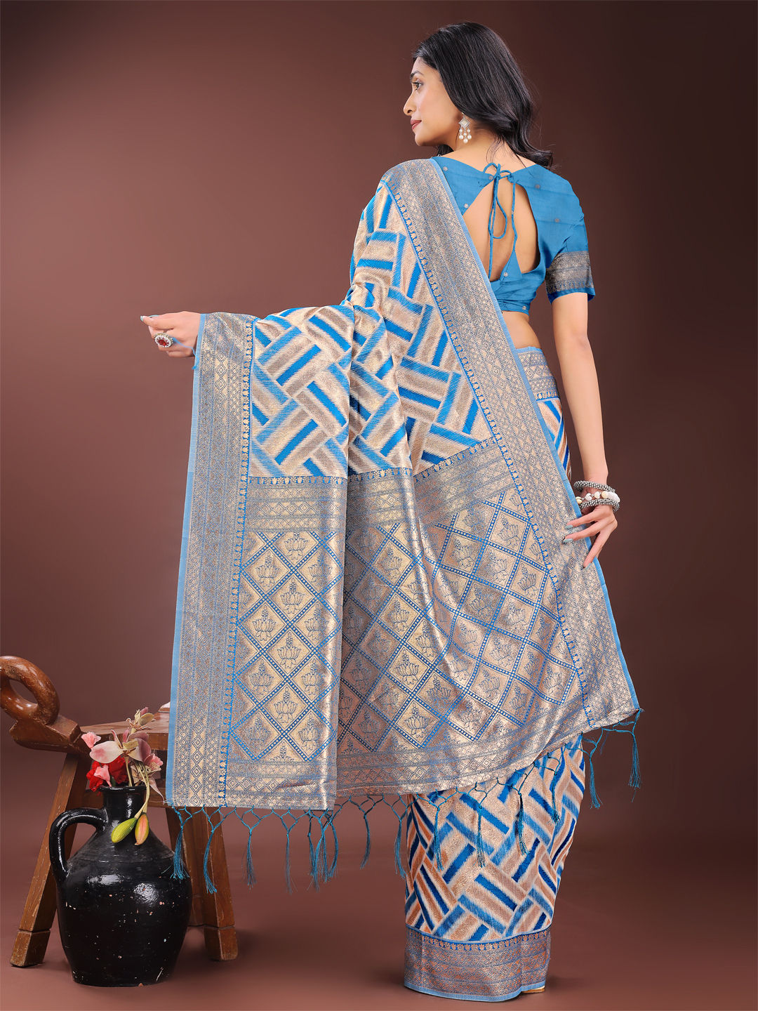 in Beige and Brown with Weaving work