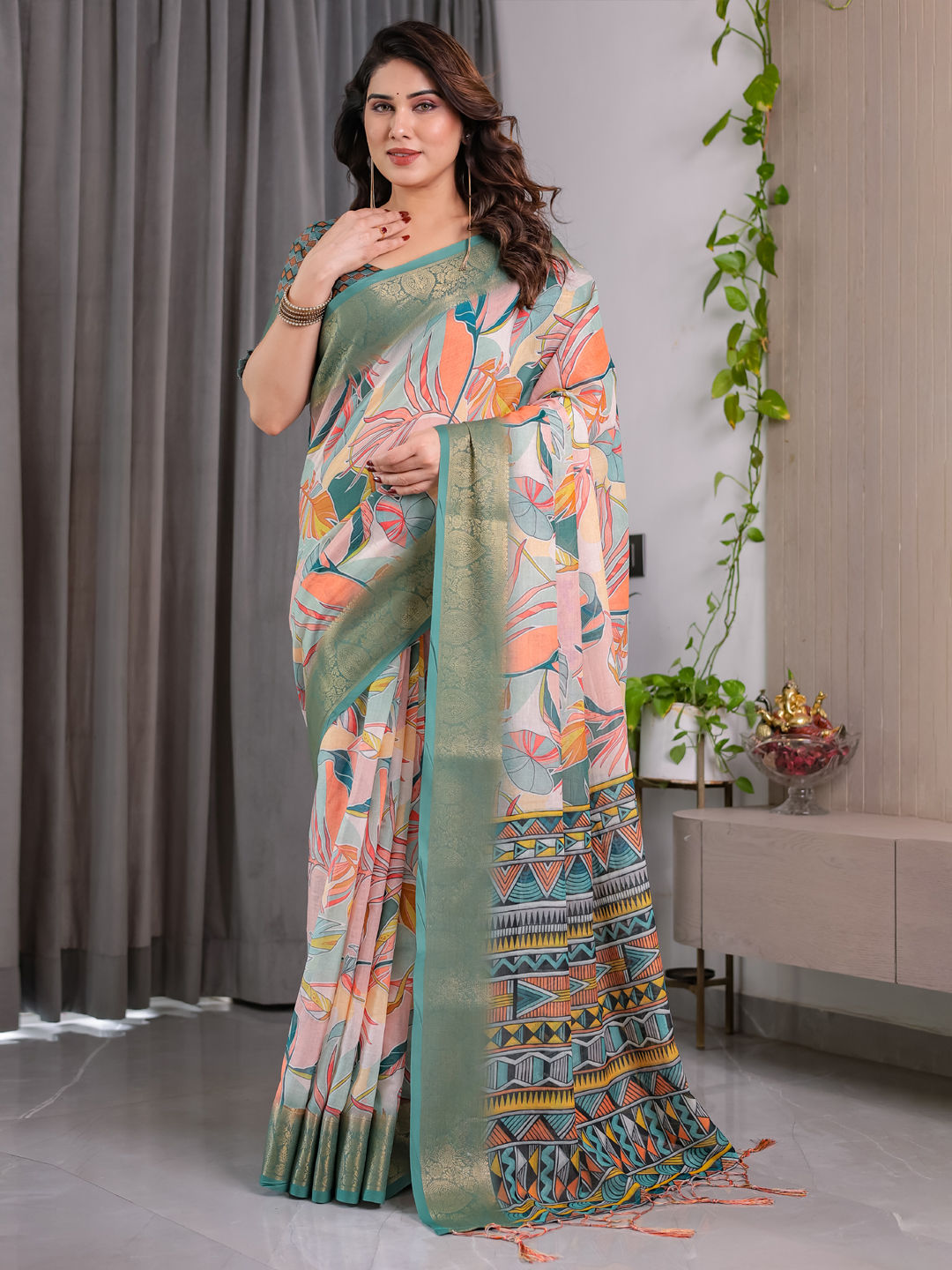 Linen Traditional Saree in Pink and Majenta with Printed work
