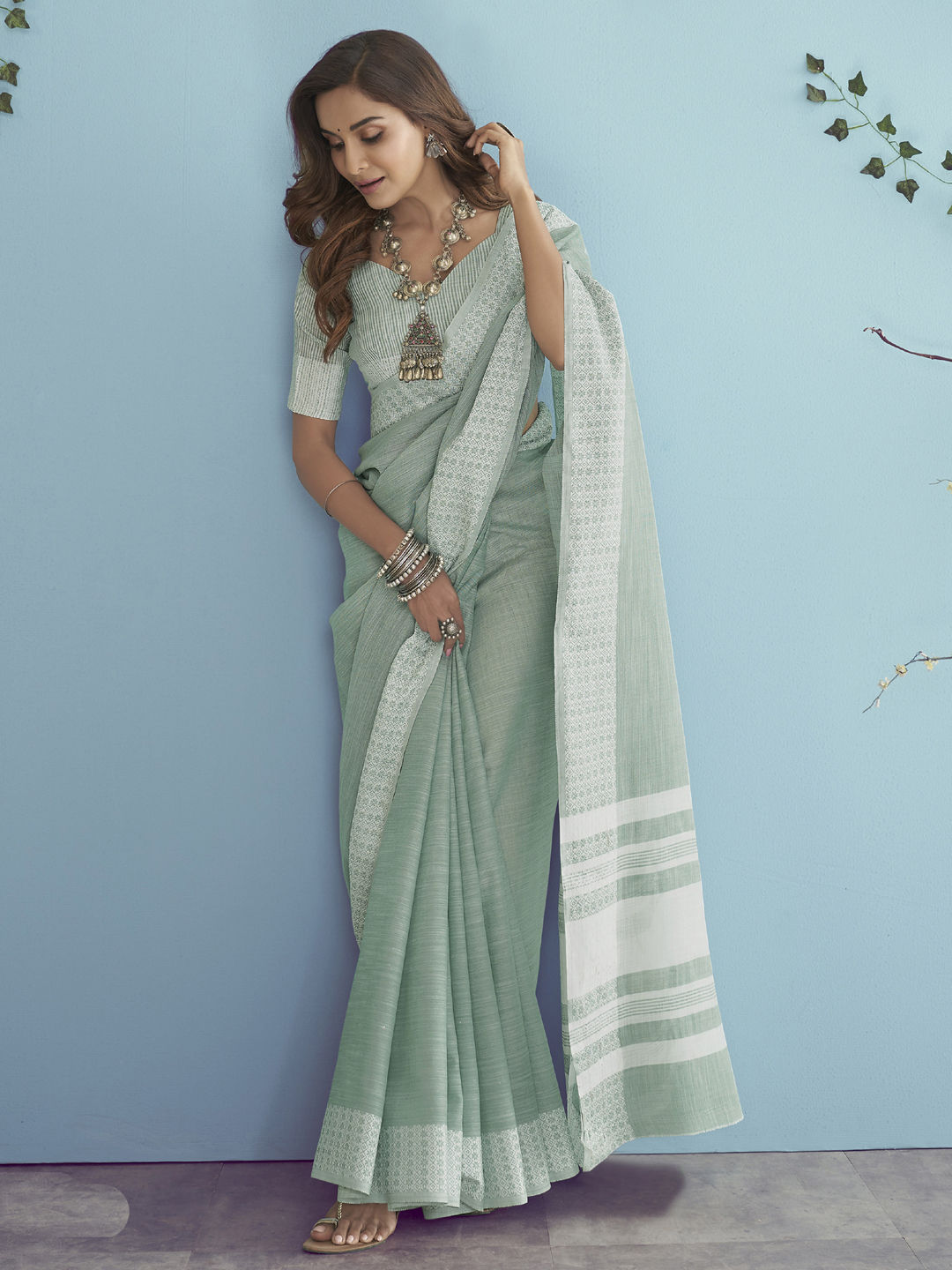 Linen Traditional Saree in Pink and Majenta with Printed work