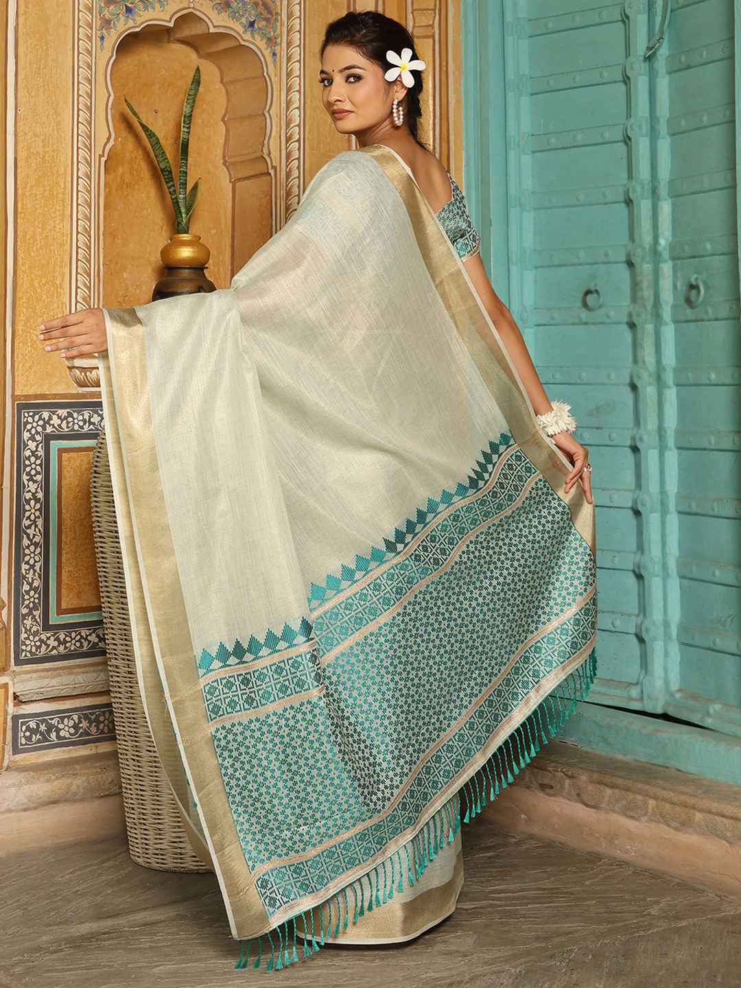 Linen Traditional Saree in Beige and Brown with Weaving work