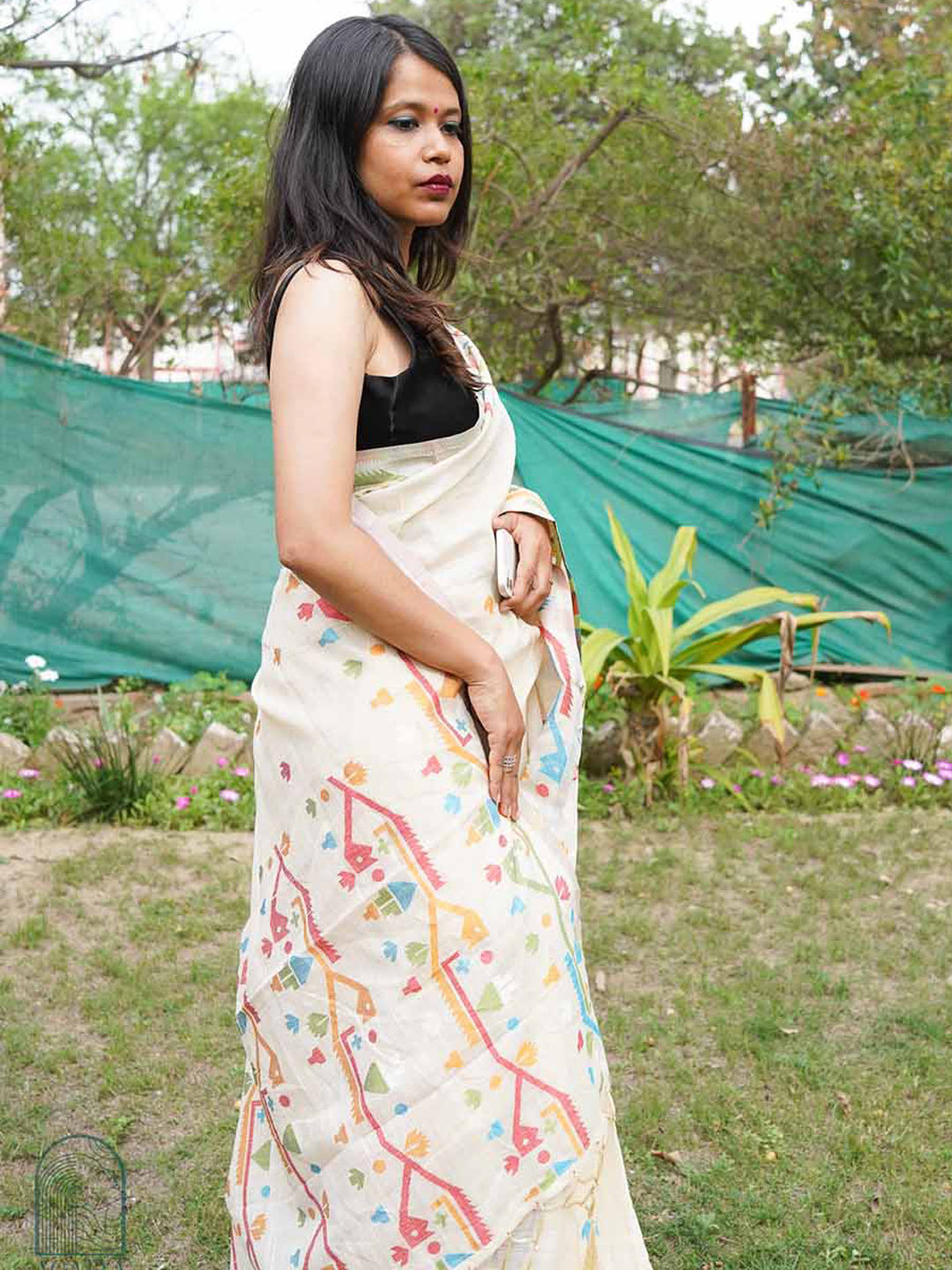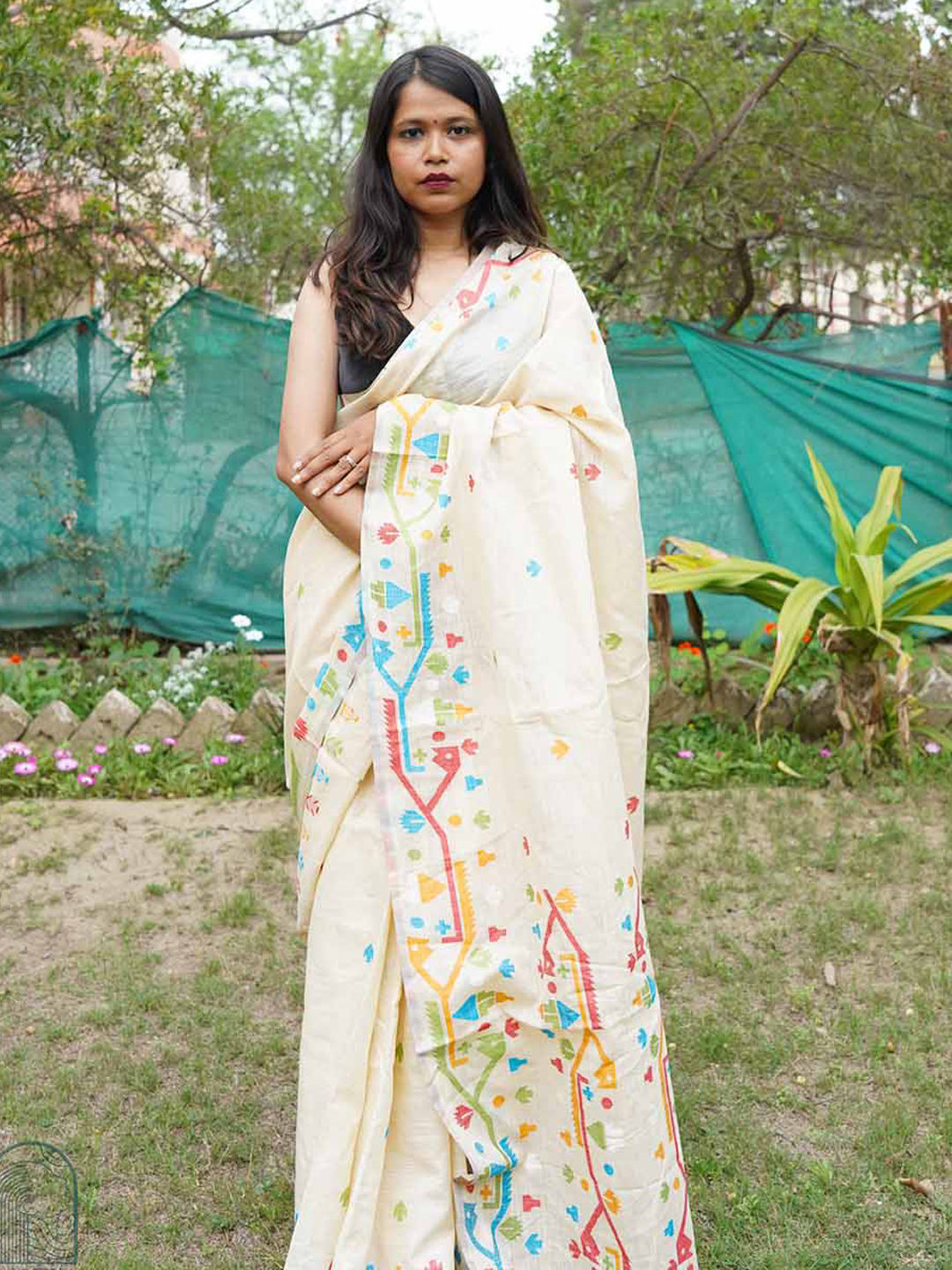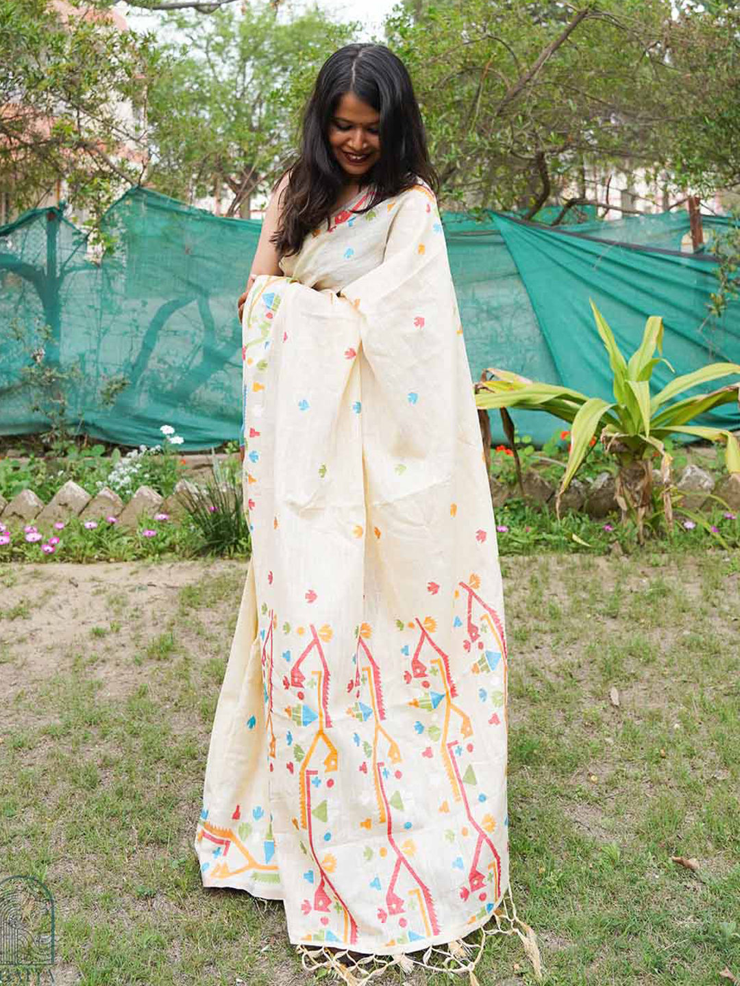 Linen Traditional Saree in Pink and Majenta with Printed work