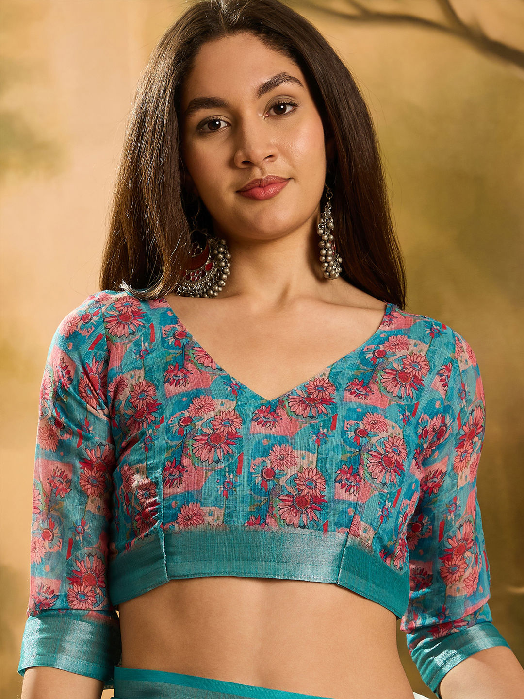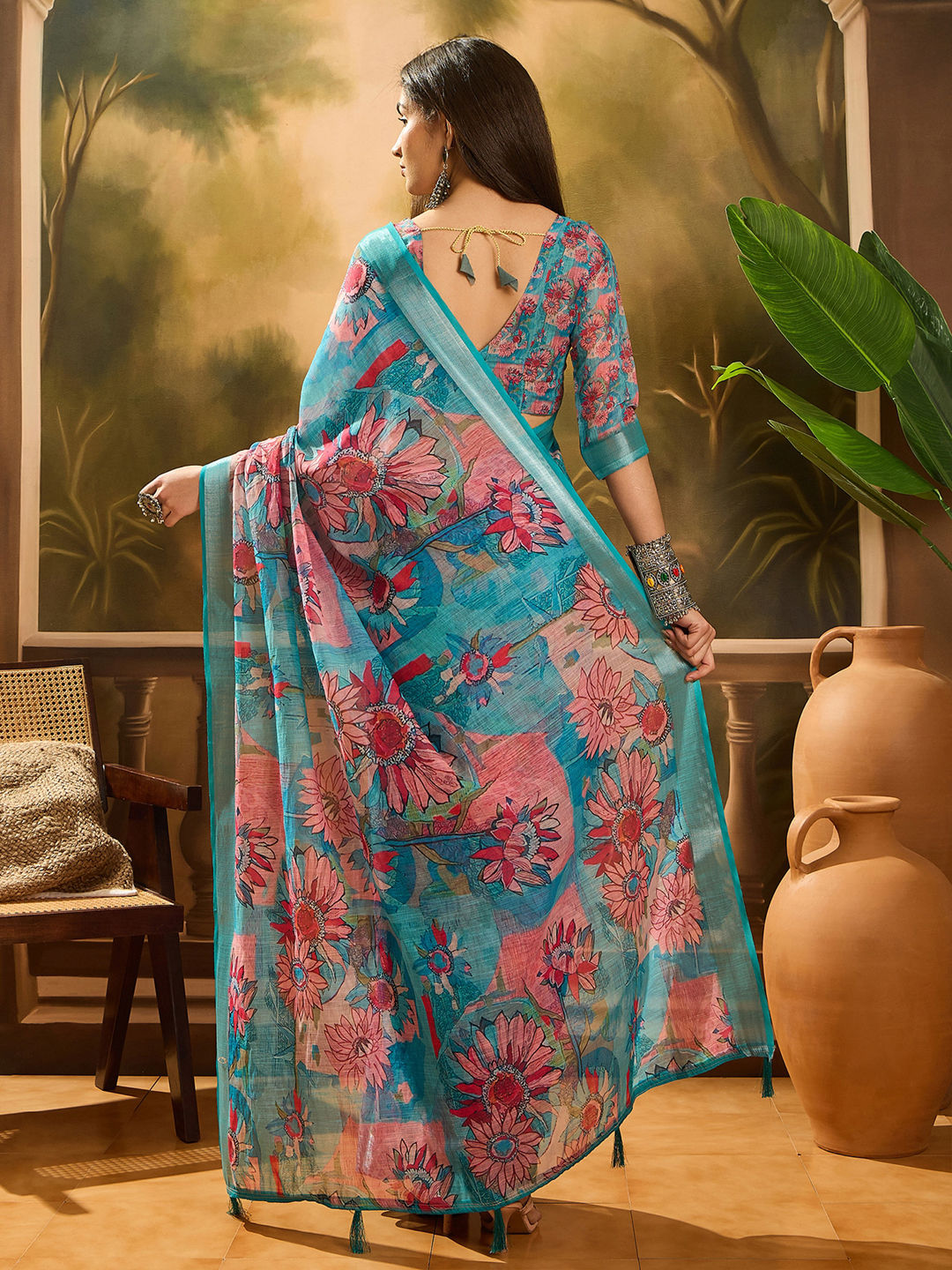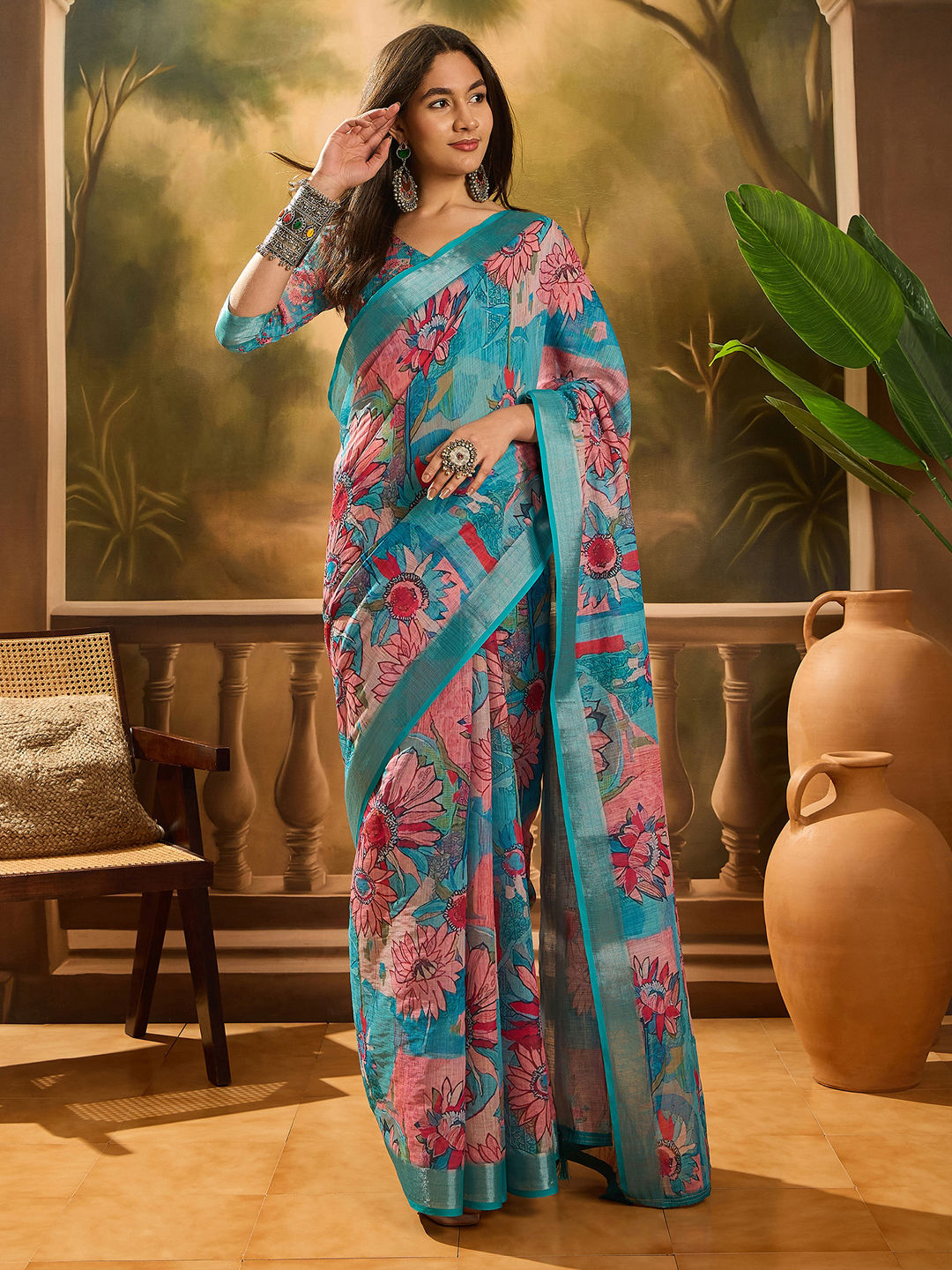 Linen Summer Saree in Purple and Violet with Digital Print work