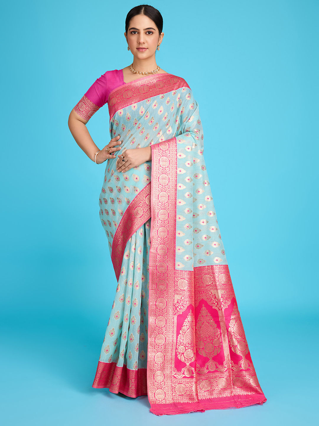 Blue color Saree in Linen fabric with Weaving, Zari work