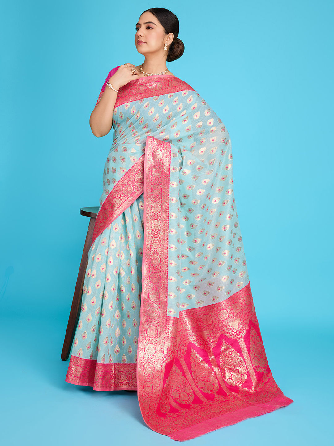 in Blue with Zari work