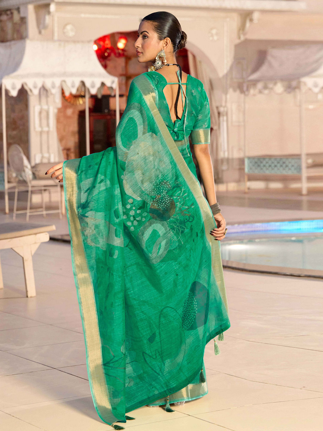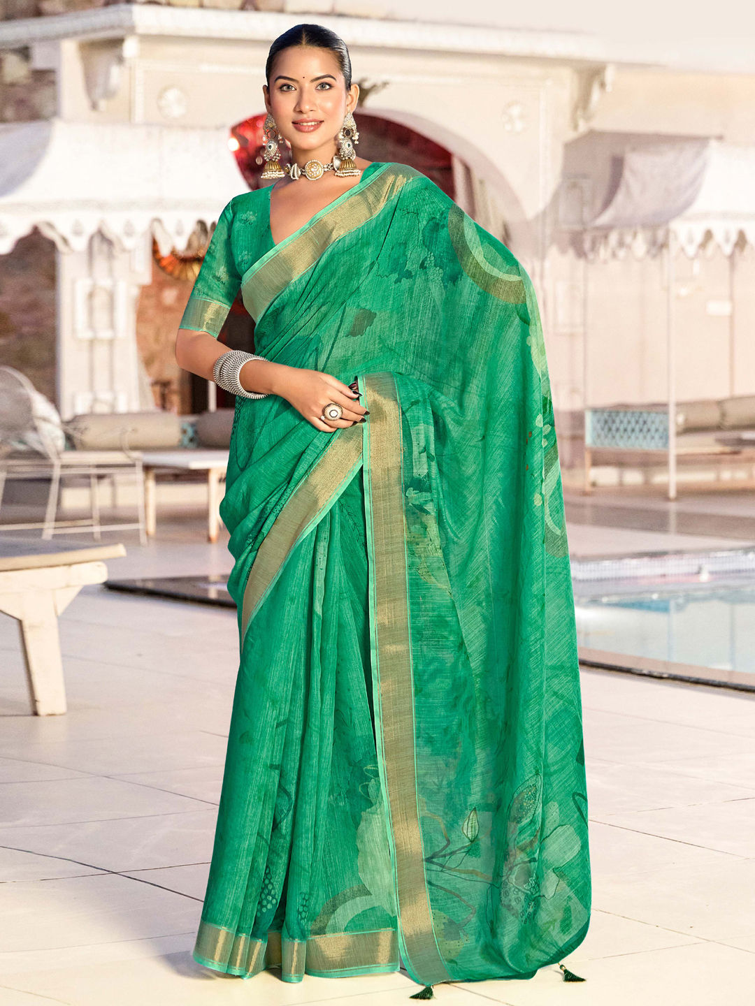Linen Traditional Saree in Pink and Majenta with Digital Print work