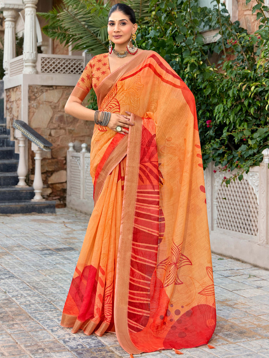 Linen Traditional Saree in Pink and Majenta with Digital Print work