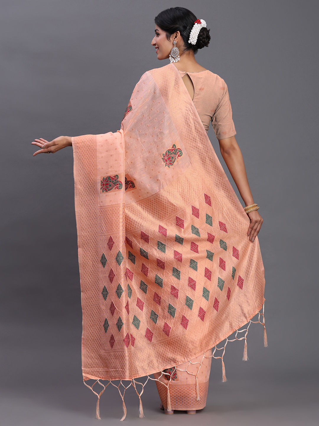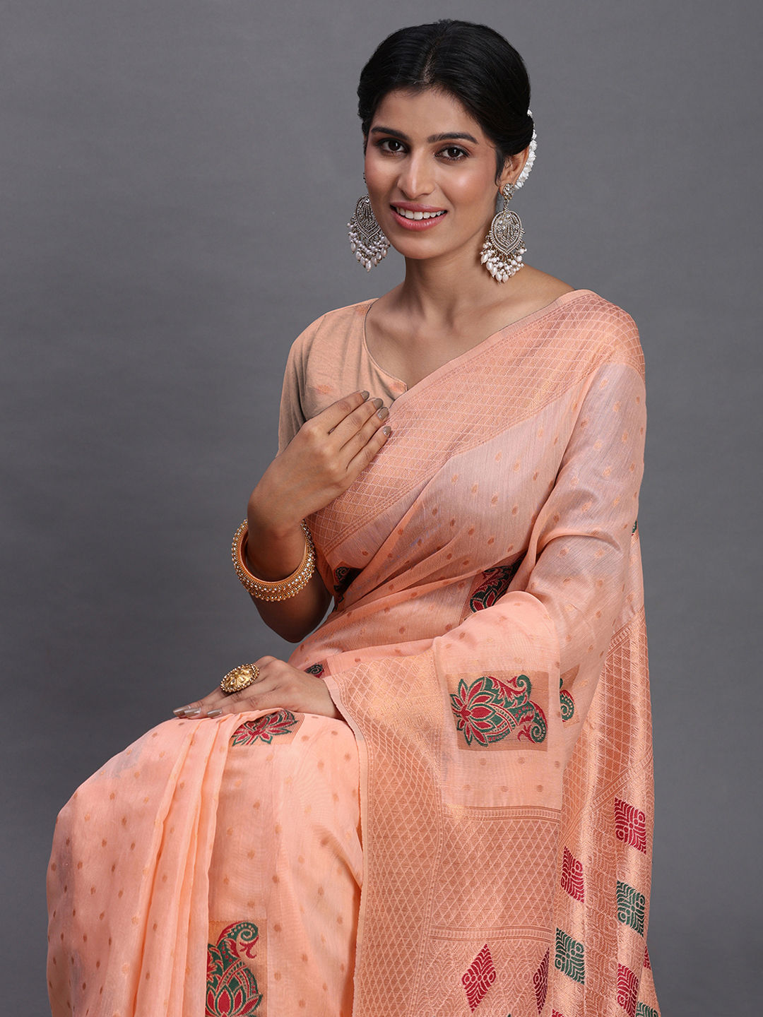 Pink and Majenta color Saree in Cotton, Linen fabric with Weaving work