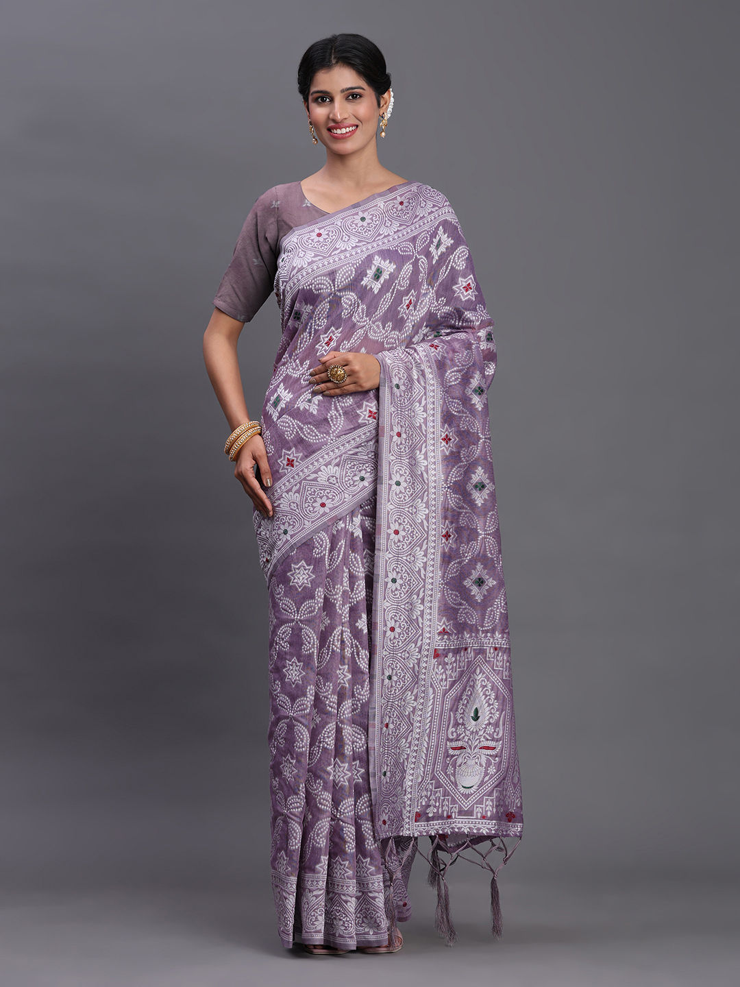 Purple and Violet color Saree in Cotton, Linen fabric with Weaving work