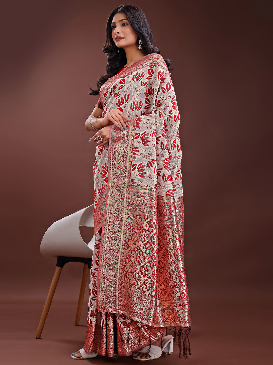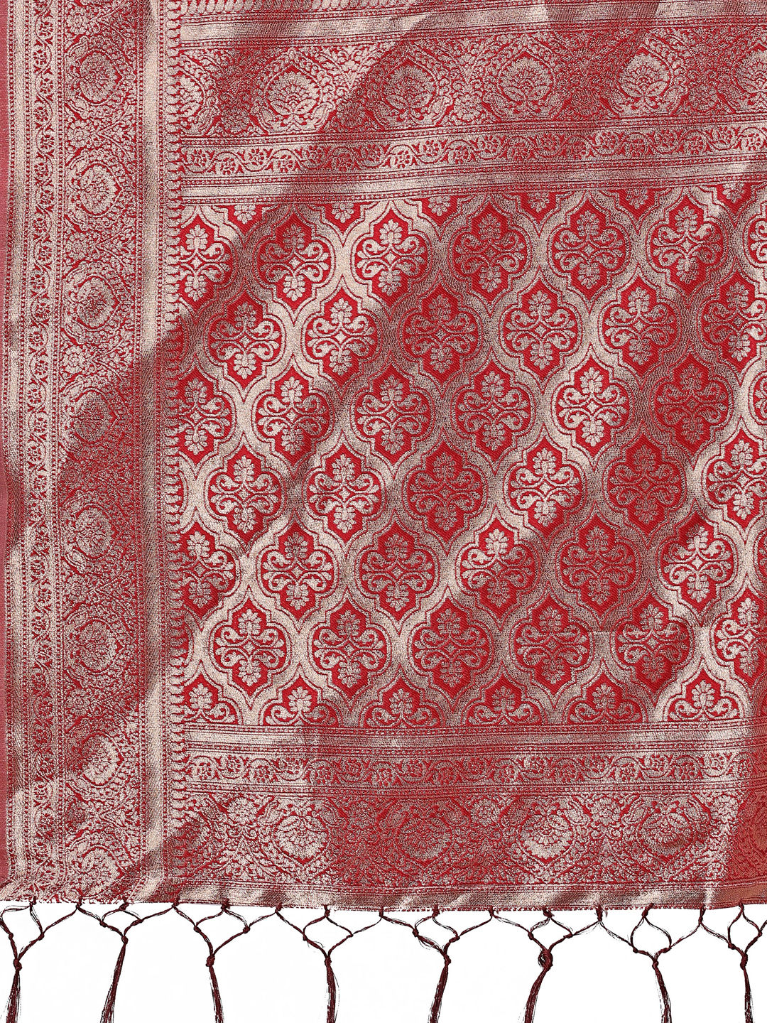 Red and Maroon color Saree in Linen fabric with Weaving work