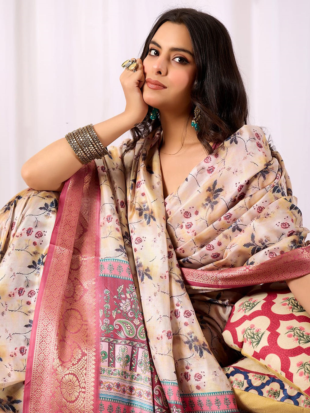 in Beige and Brown with Floral work
