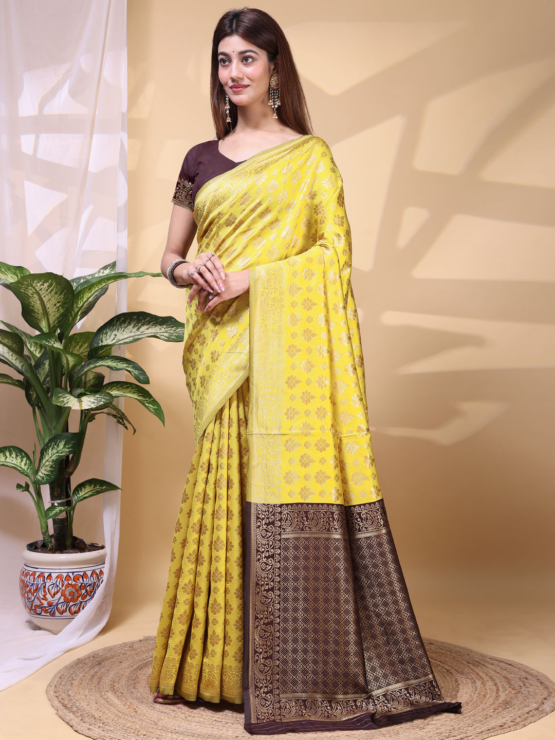 Beige and Brown, Yellow color Saree in Litchi Silk fabric with Weaving work