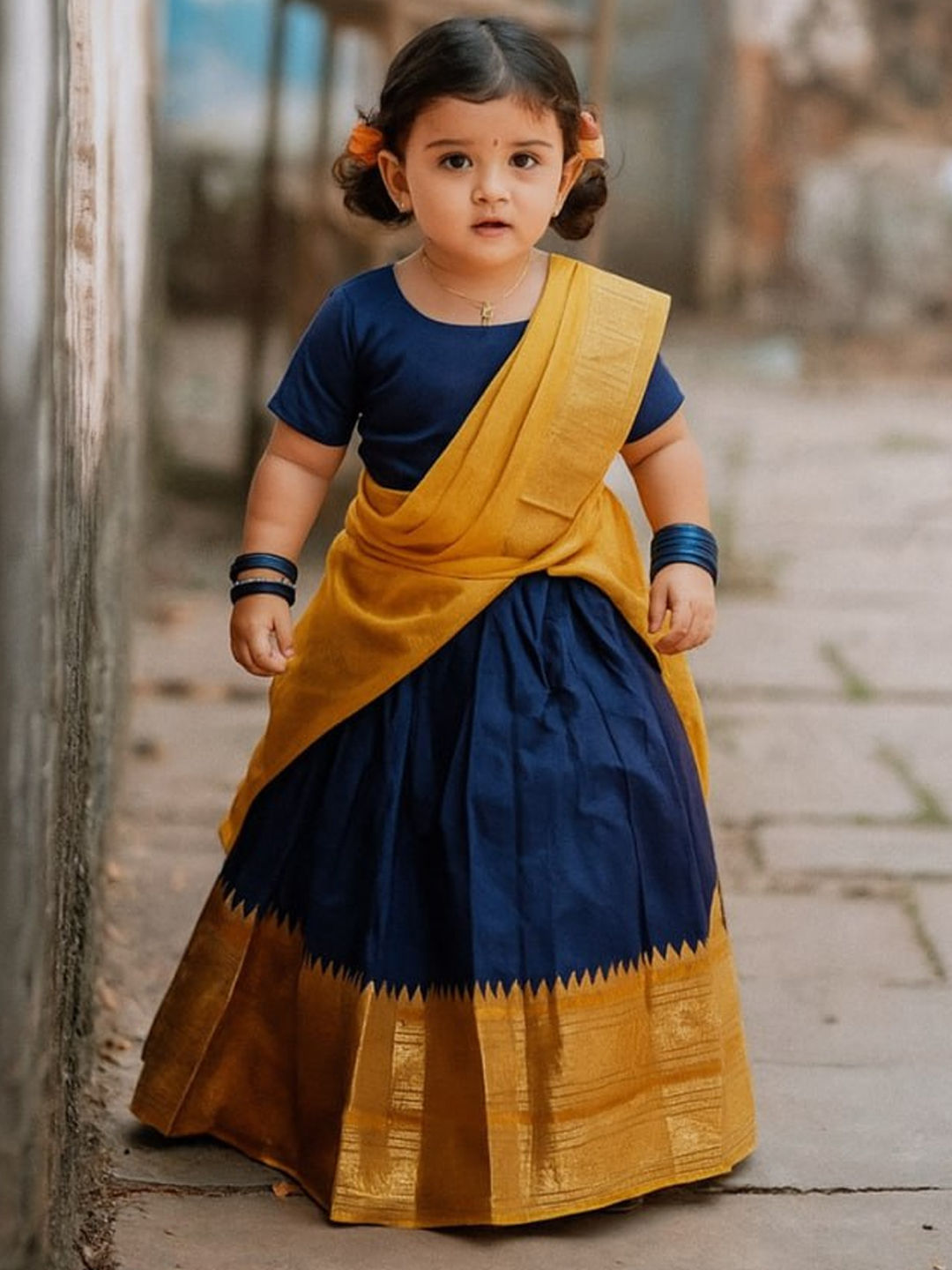 Blue color Kids Lehenga in Litchi Silk fabric with Weaving work
