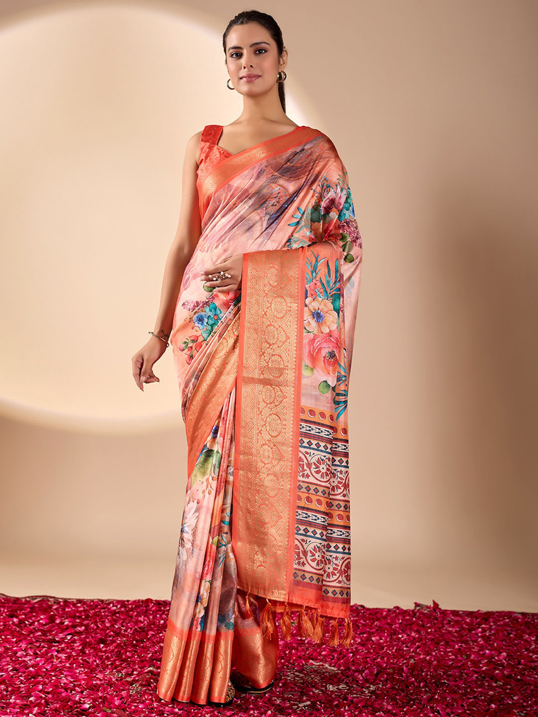 Litchi Silk Traditional Saree in Multicolor with Weaving work