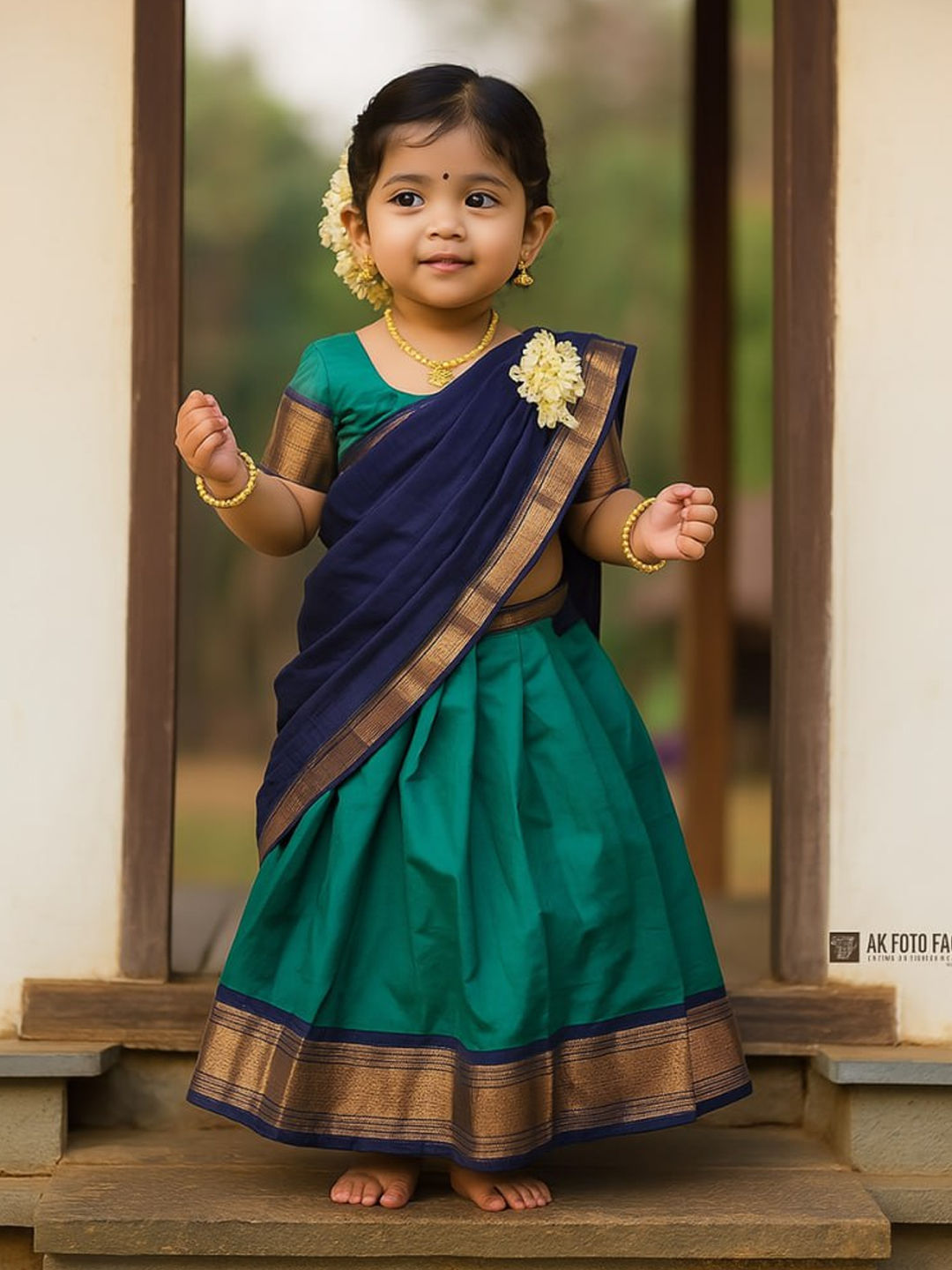 Green color Kids Lehenga in Litchi Silk fabric with Weaving work