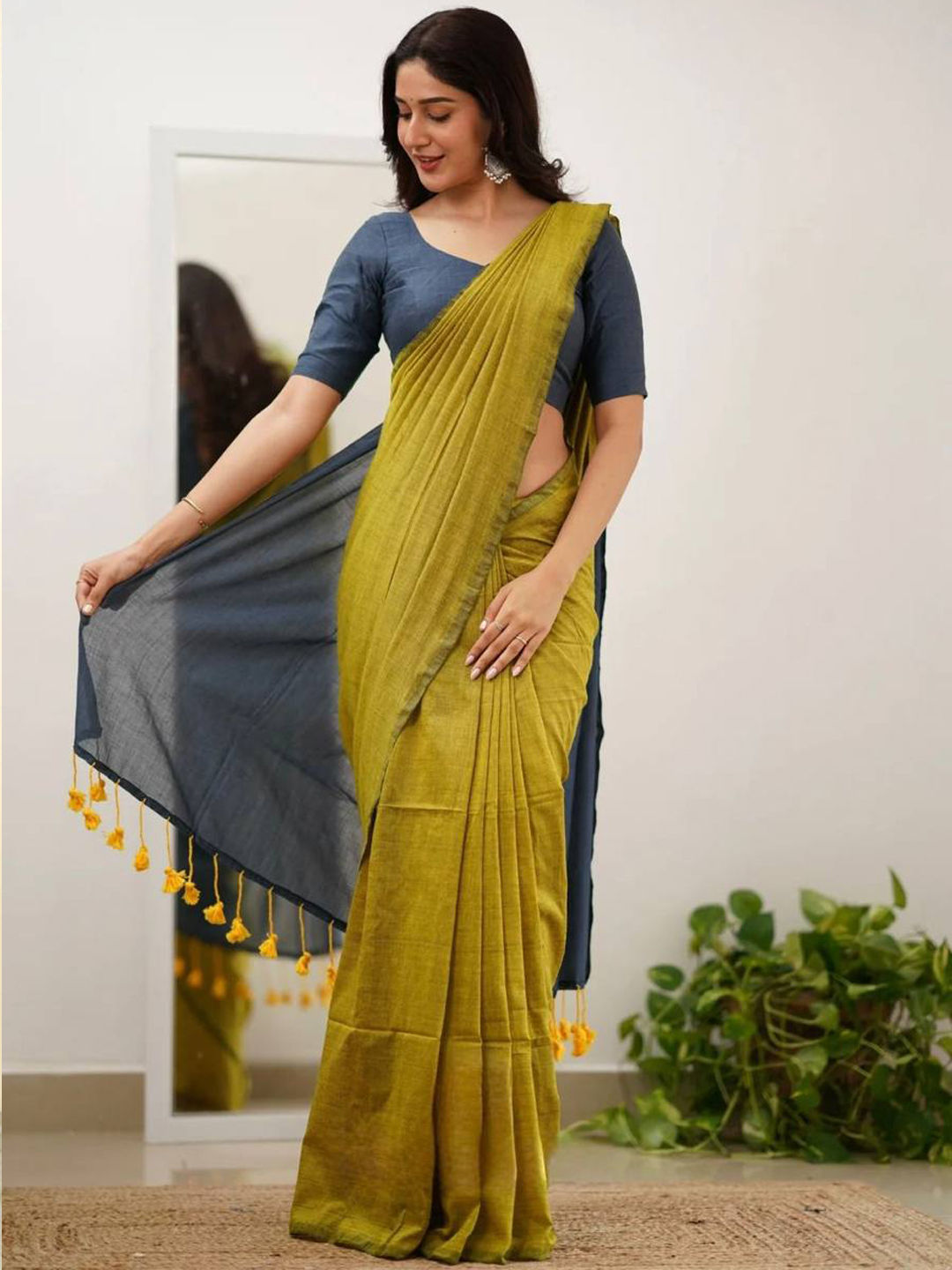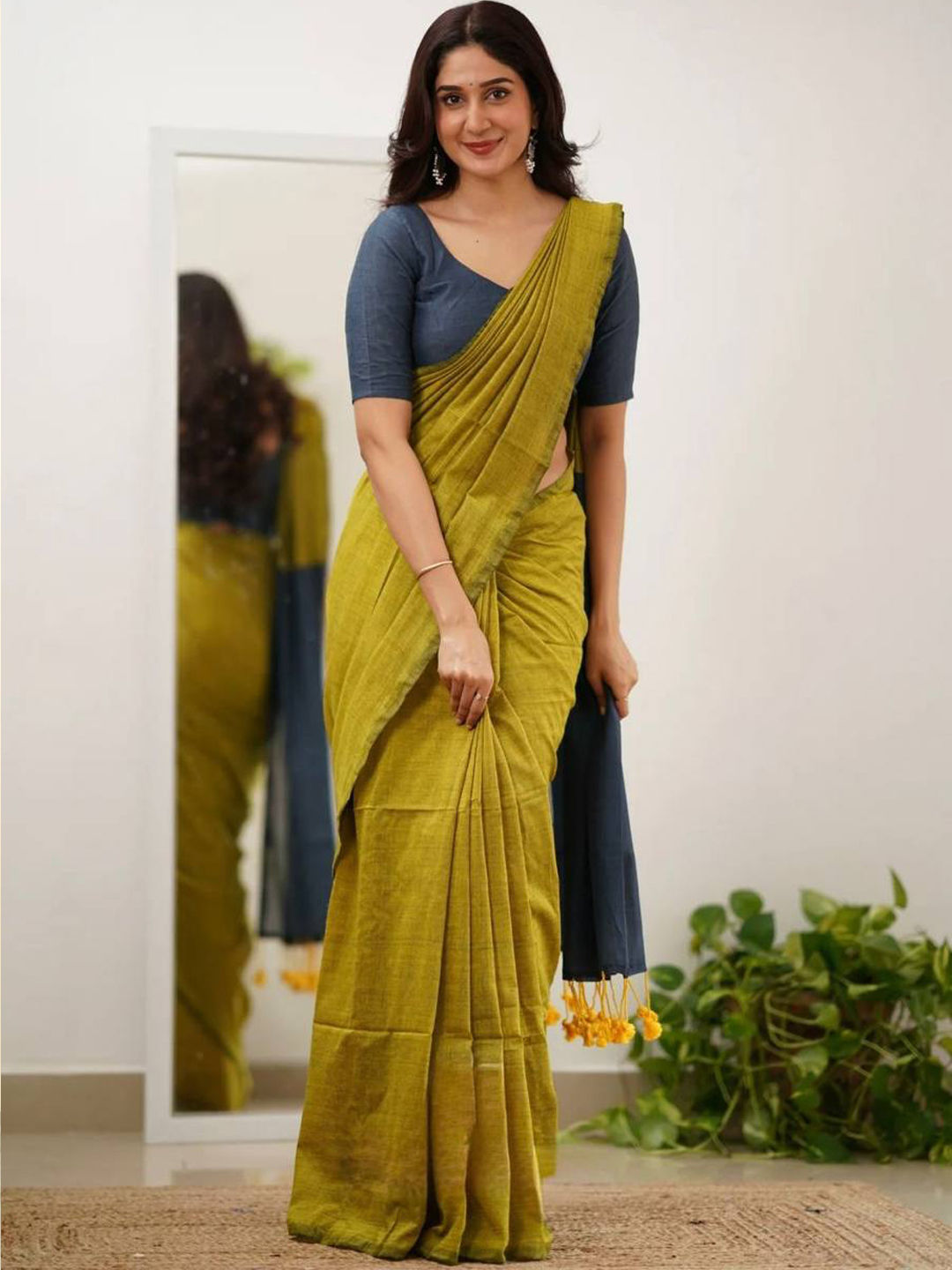 Green color Saree in Cotton, Malmal fabric with Printed work
