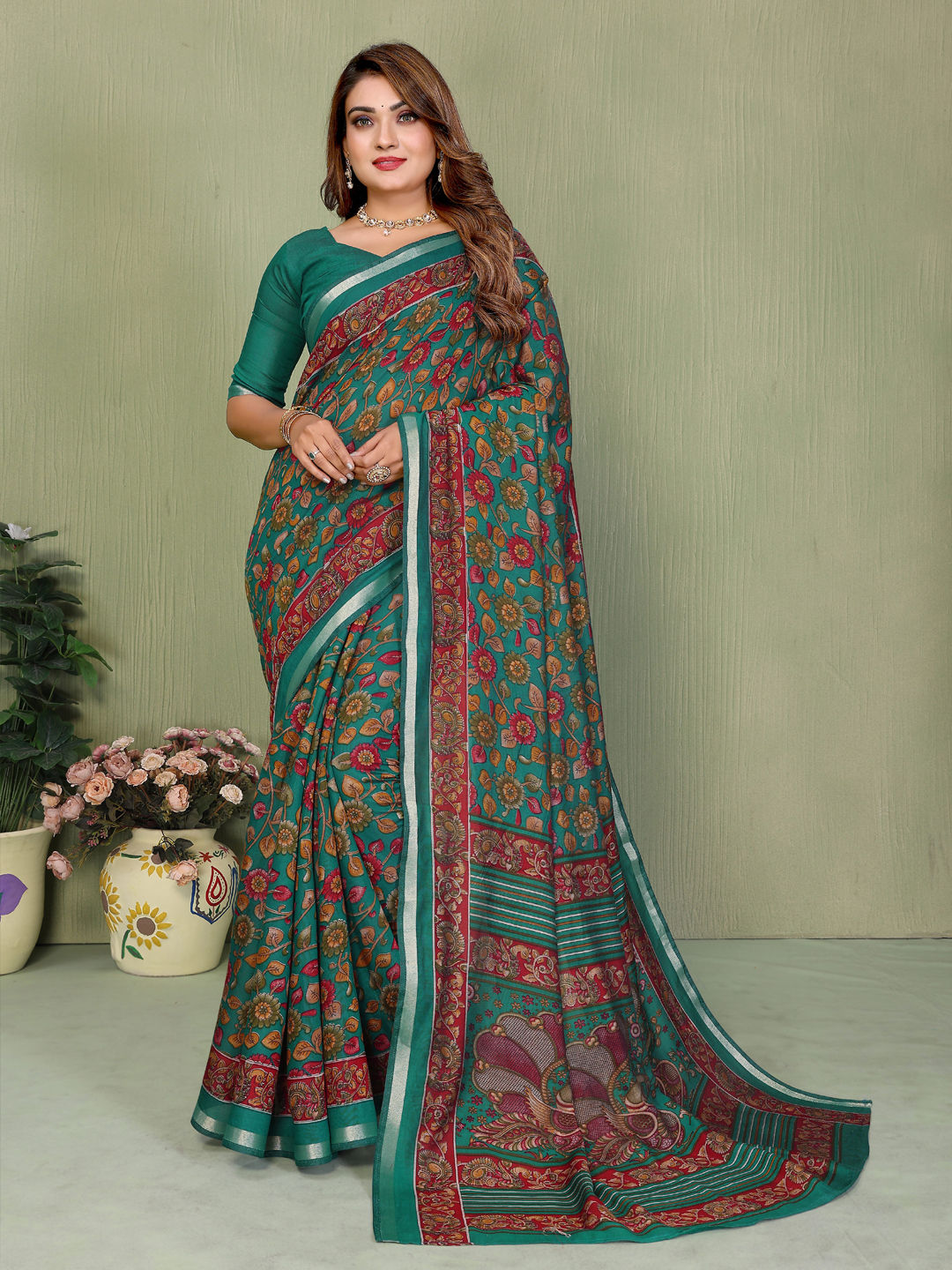 Green color Saree in Cotton, Malmal fabric with Printed work