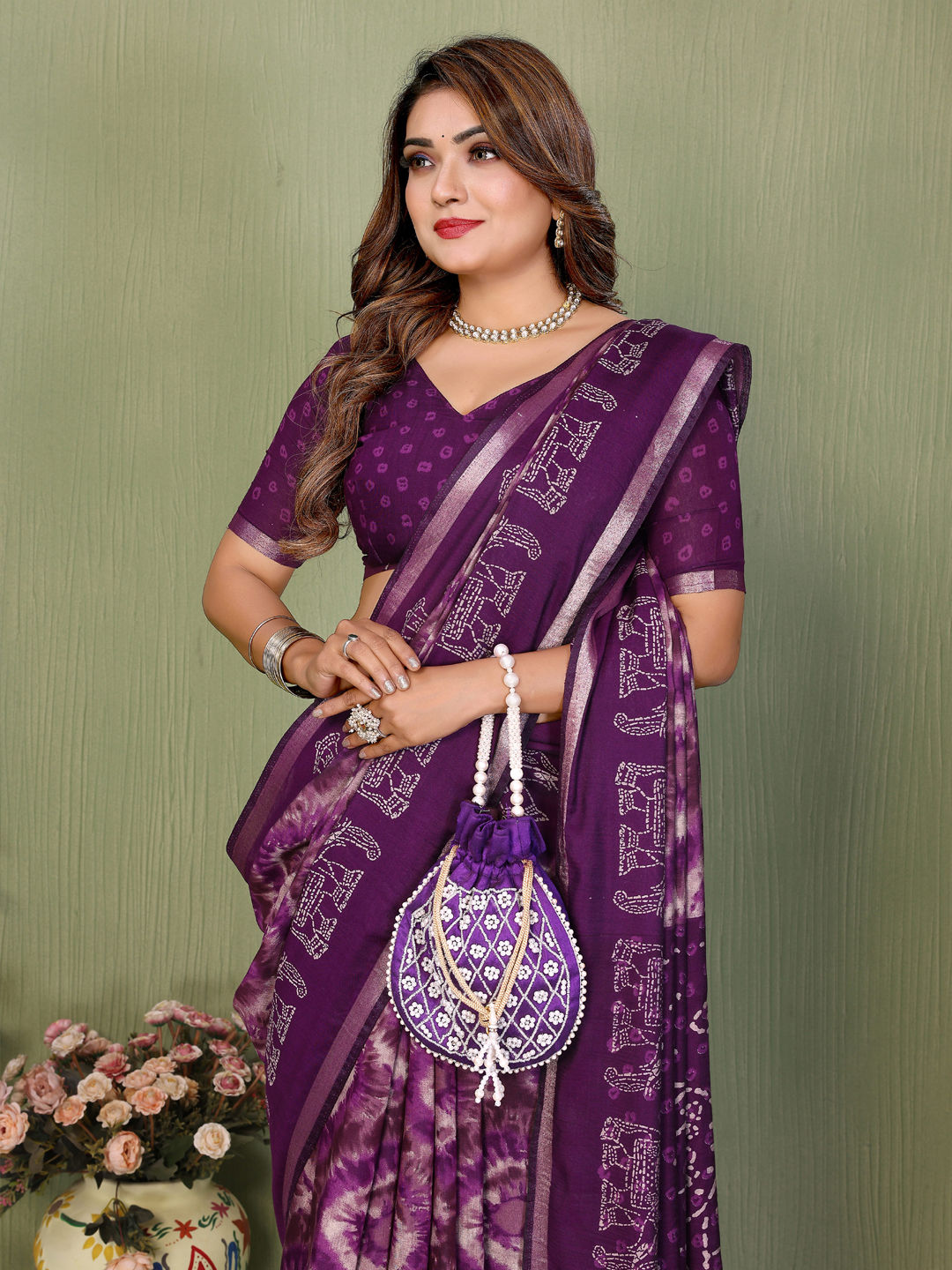 Purple and Violet color Saree in Cotton, Malmal fabric with Printed work