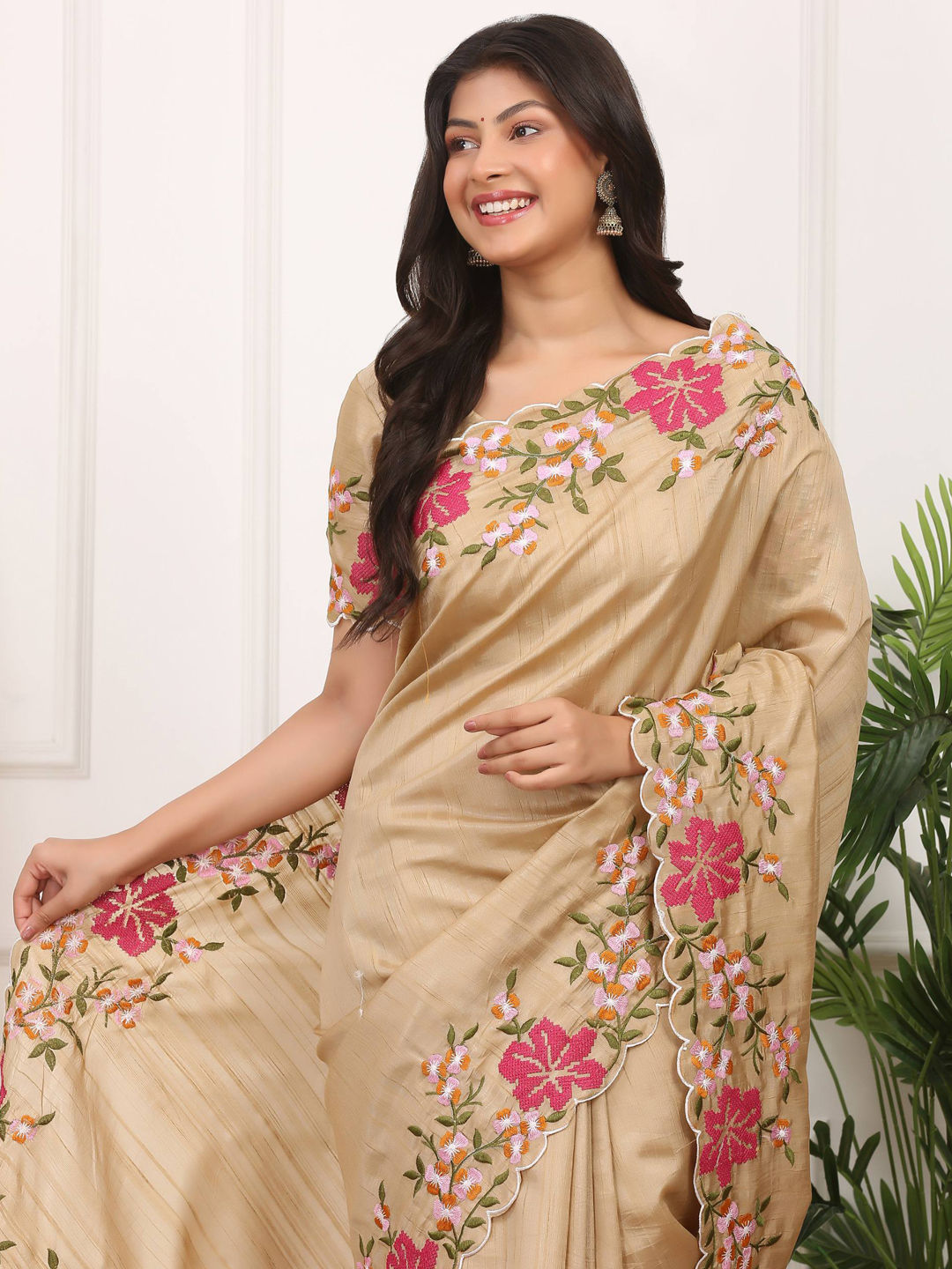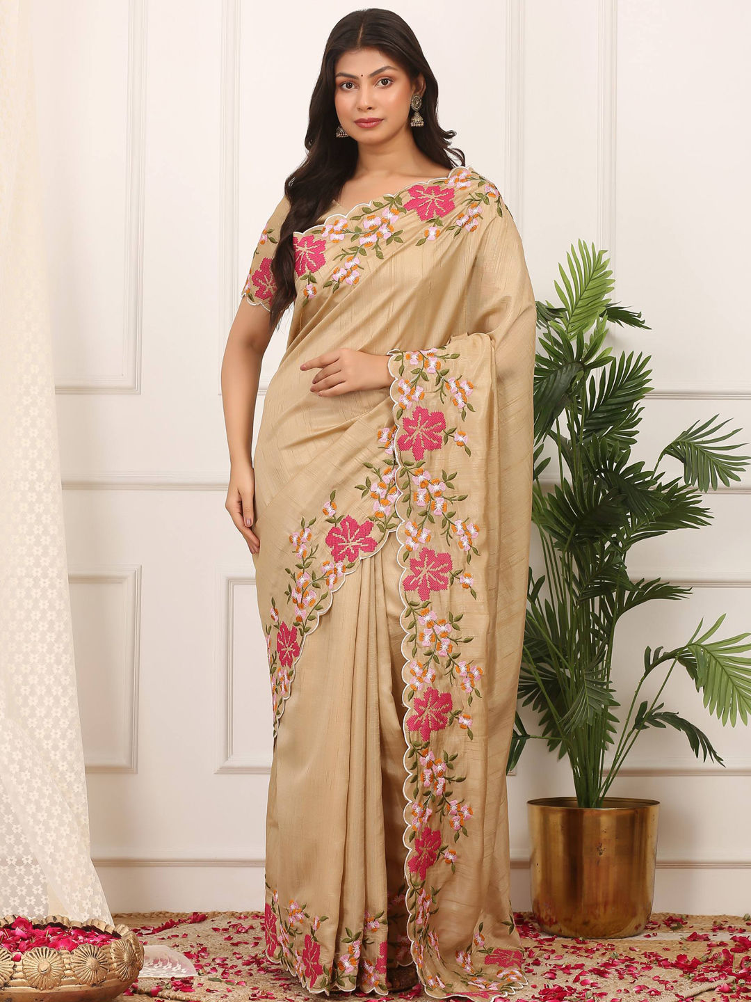 in Beige and Brown with Thread work