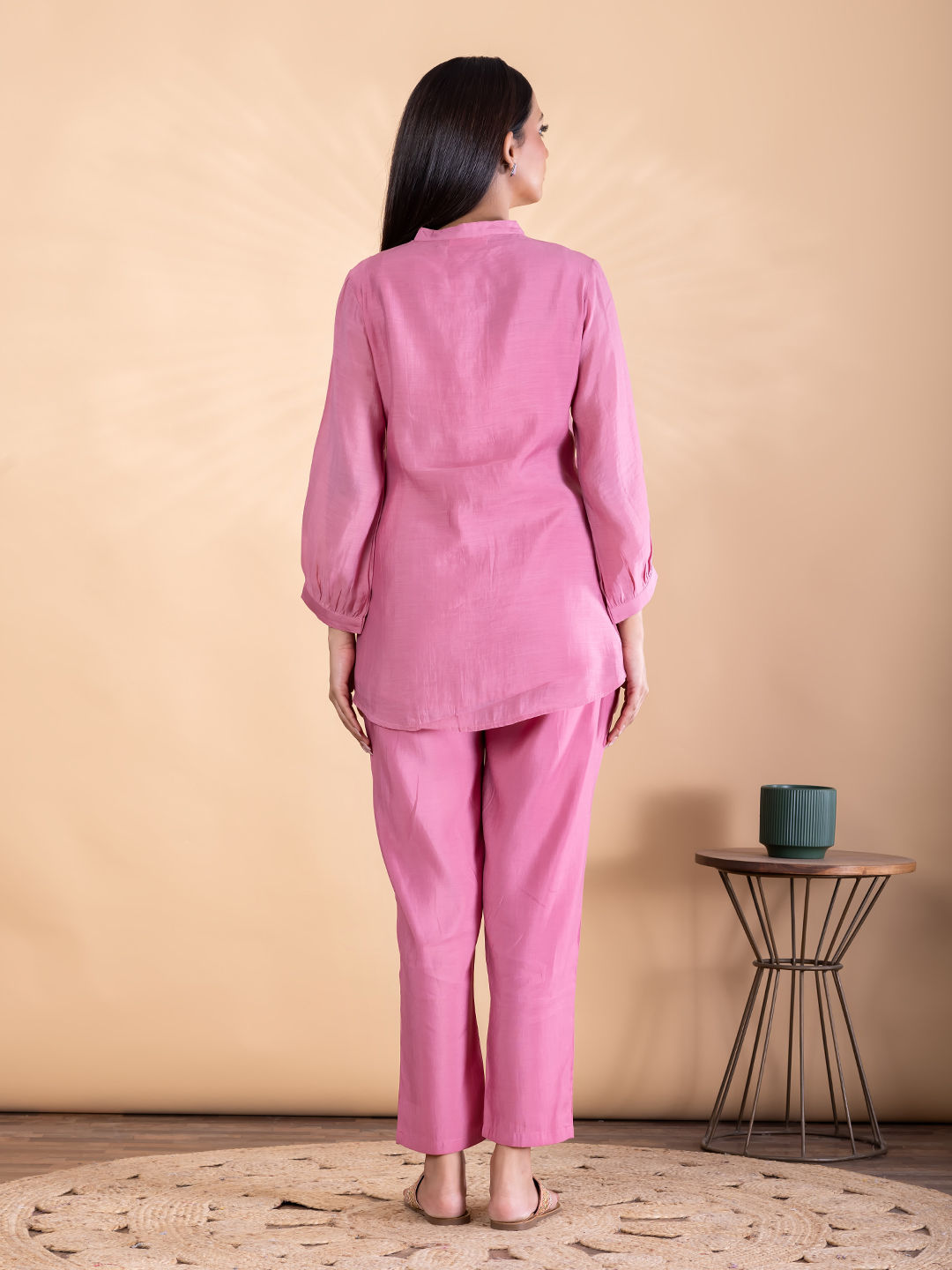 Pink and Majenta color Co-ords Set in Mul Chanderi fabric with Embroidered, Resham, Thread work
