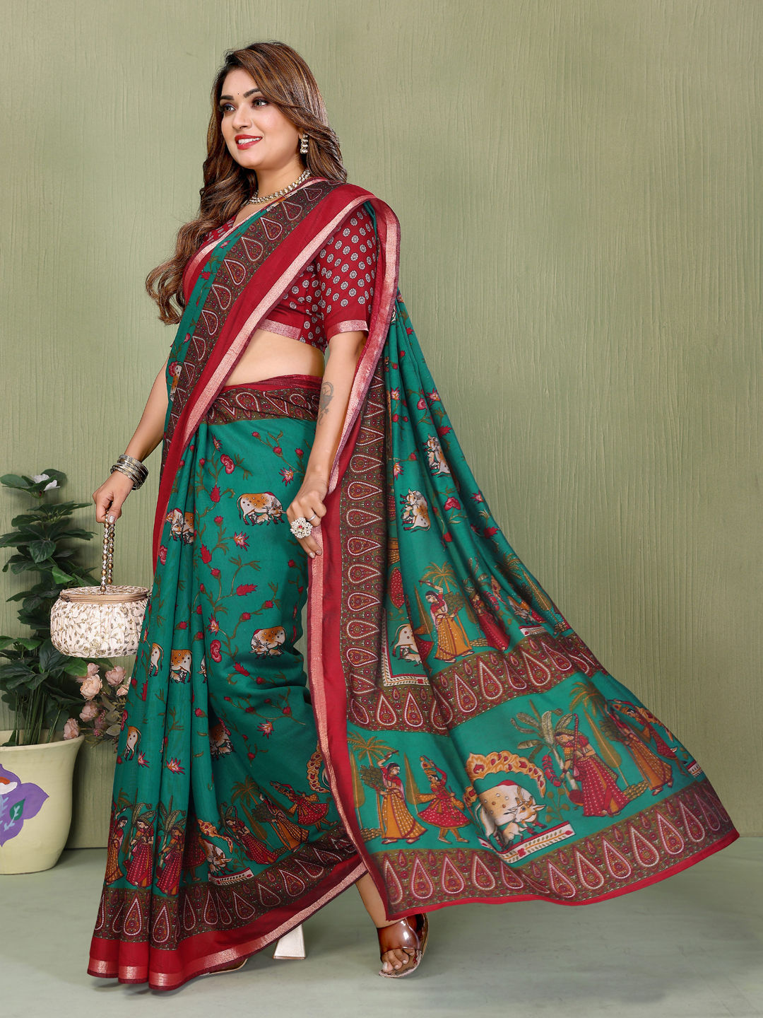 Mul Cotton Festive Saree in Red and Maroon with Printed work