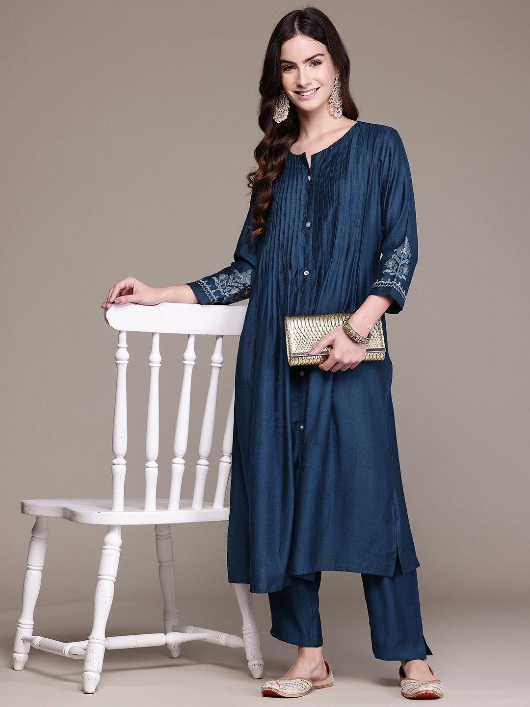 Cotton Festive Salwar Kameez in Blue with Floral work